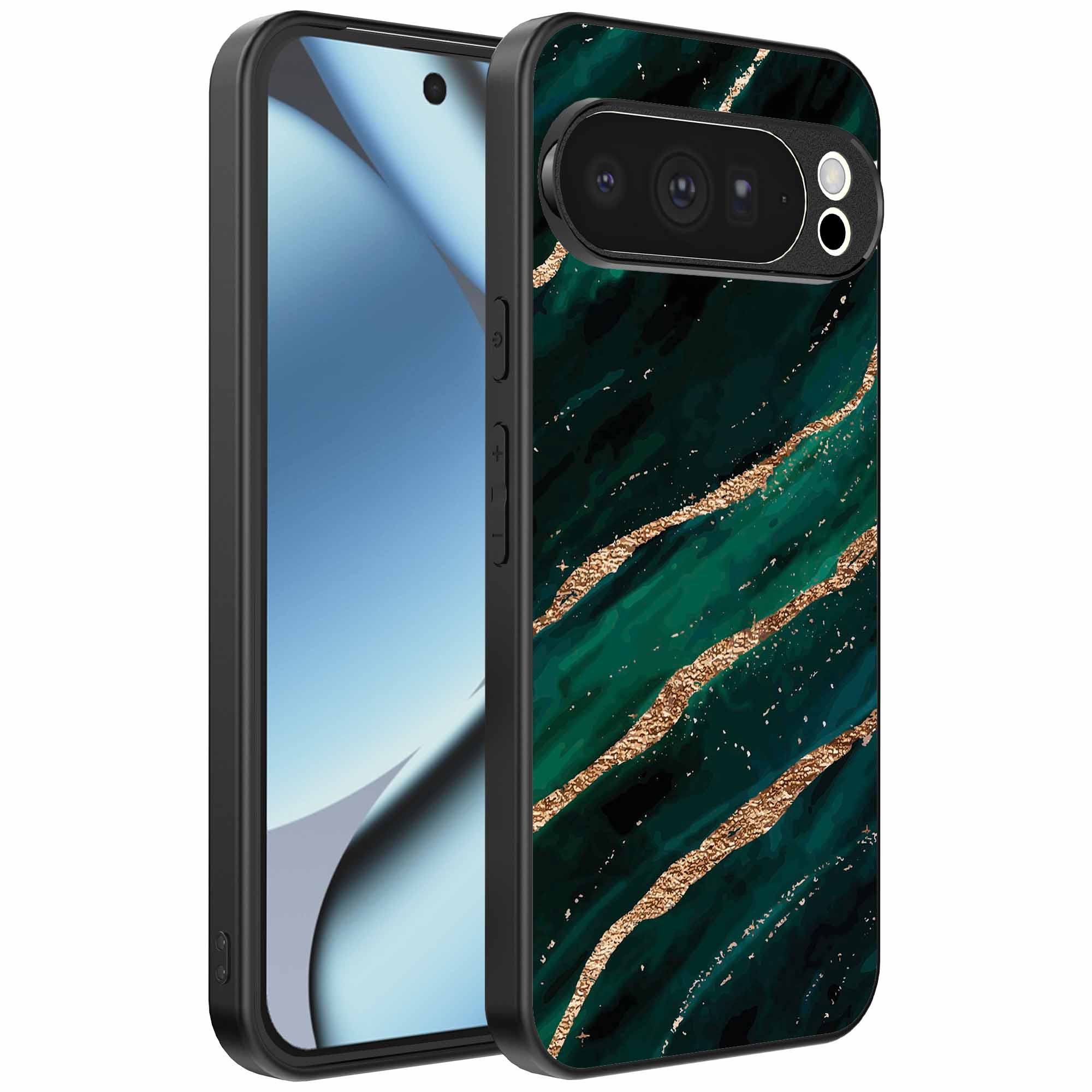 – 1x Google Pixel 10 Pro telefoonhoesje met Groen Goud marmer design