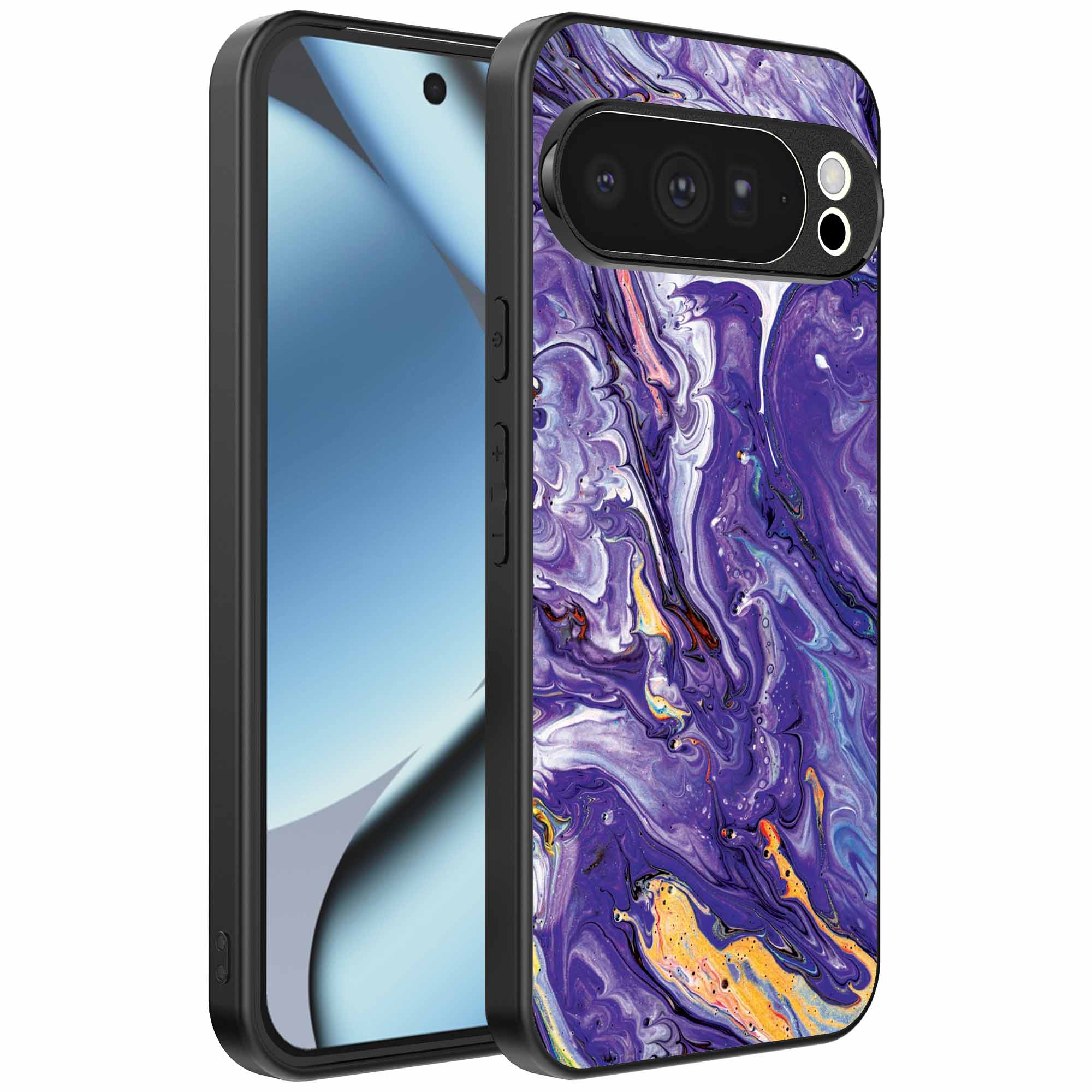 – 1x Google Pixel 10 Pro telefoonhoesje met goud paars marmer design