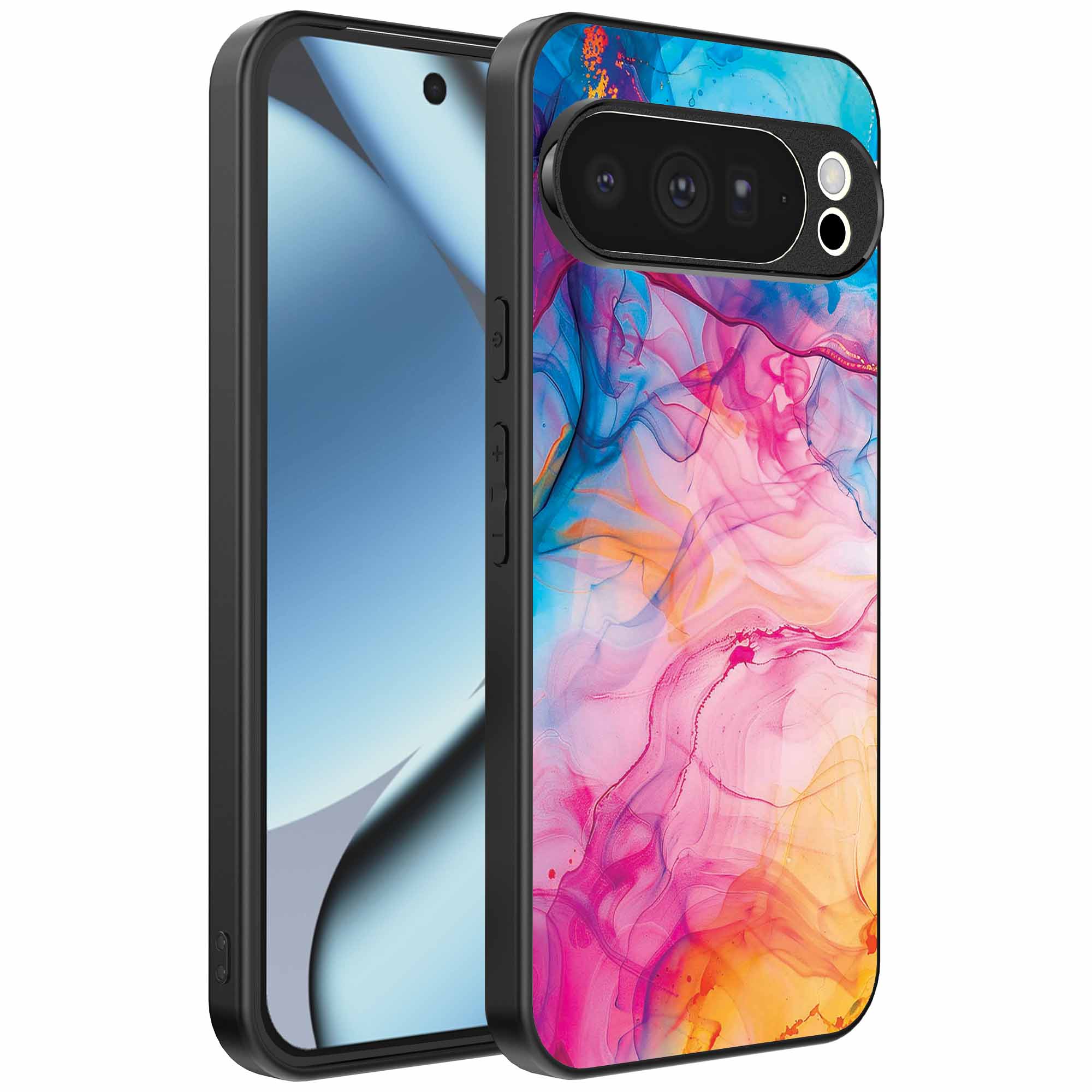 1x Telefoonhoesje voor Google Pixel 10 Pro met regenboog acryl marmer opdruk