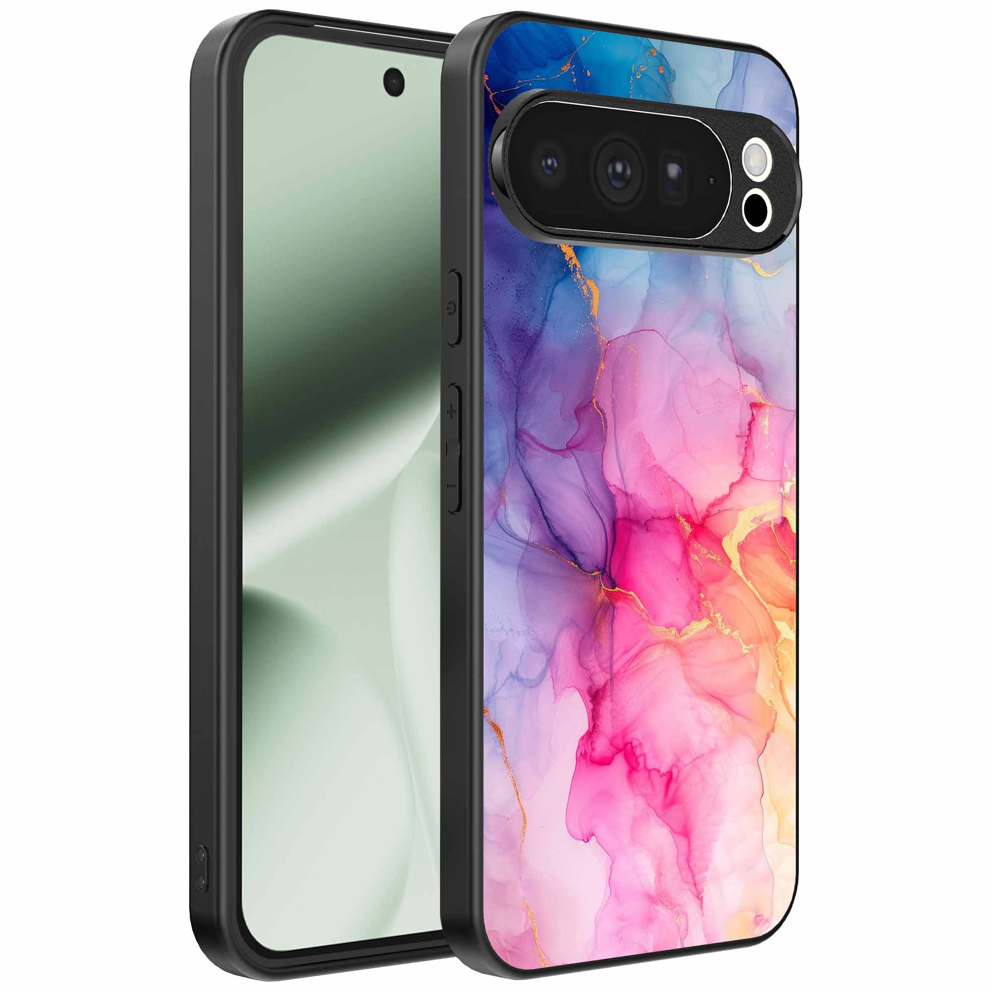 – 1x Google Pixel 10 Pro XL telefoonhoesje met regenboog marmer design