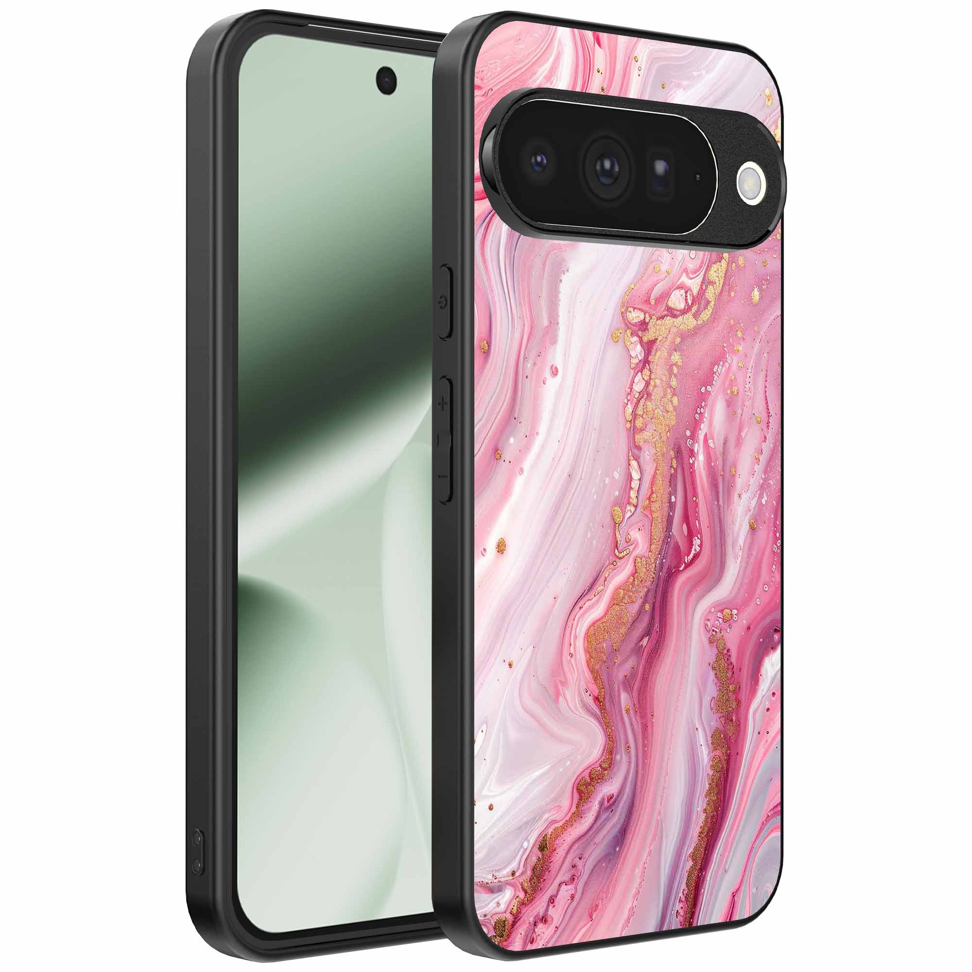 – 1x Google Pixel 10 telefoonhoesje met roze marmer design