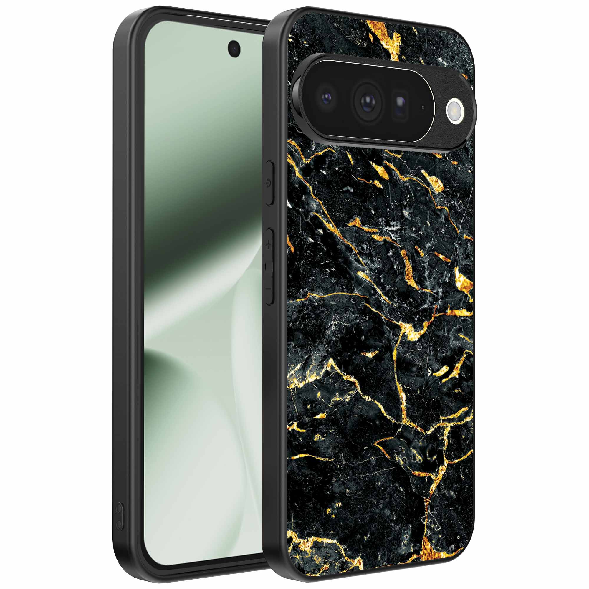 – 1x Google Pixel 10 telefoonhoesje met Goud Zwart marmer design