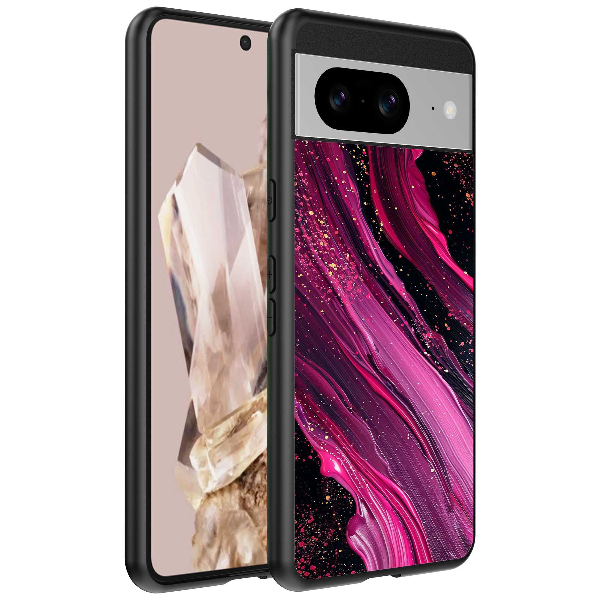 – 1x Google Pixel 8 Pro telefoonhoesje met paars roze marmer design