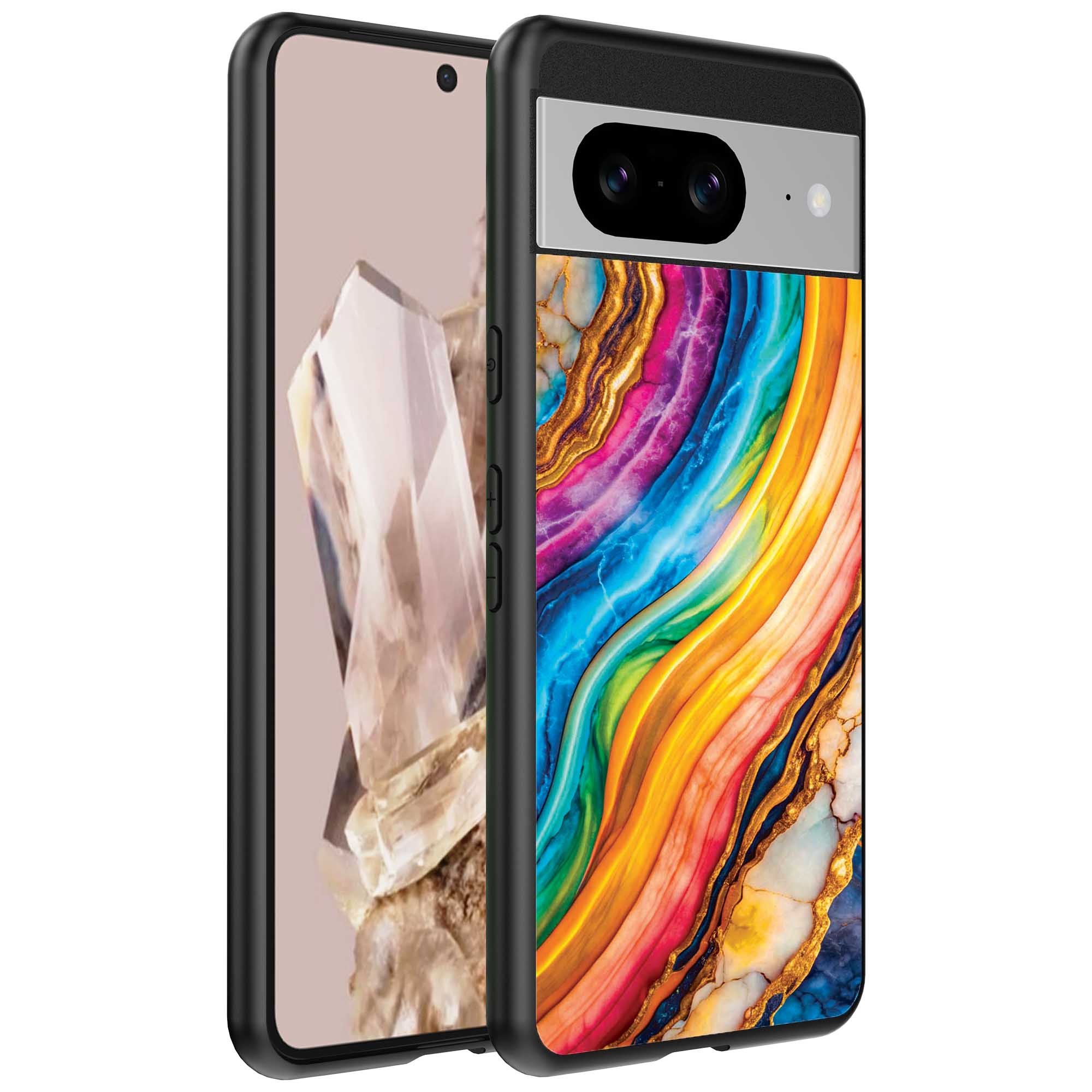 – 1x Google Pixel 8 Pro telefoonhoesje met Regenboog Goud marmer design