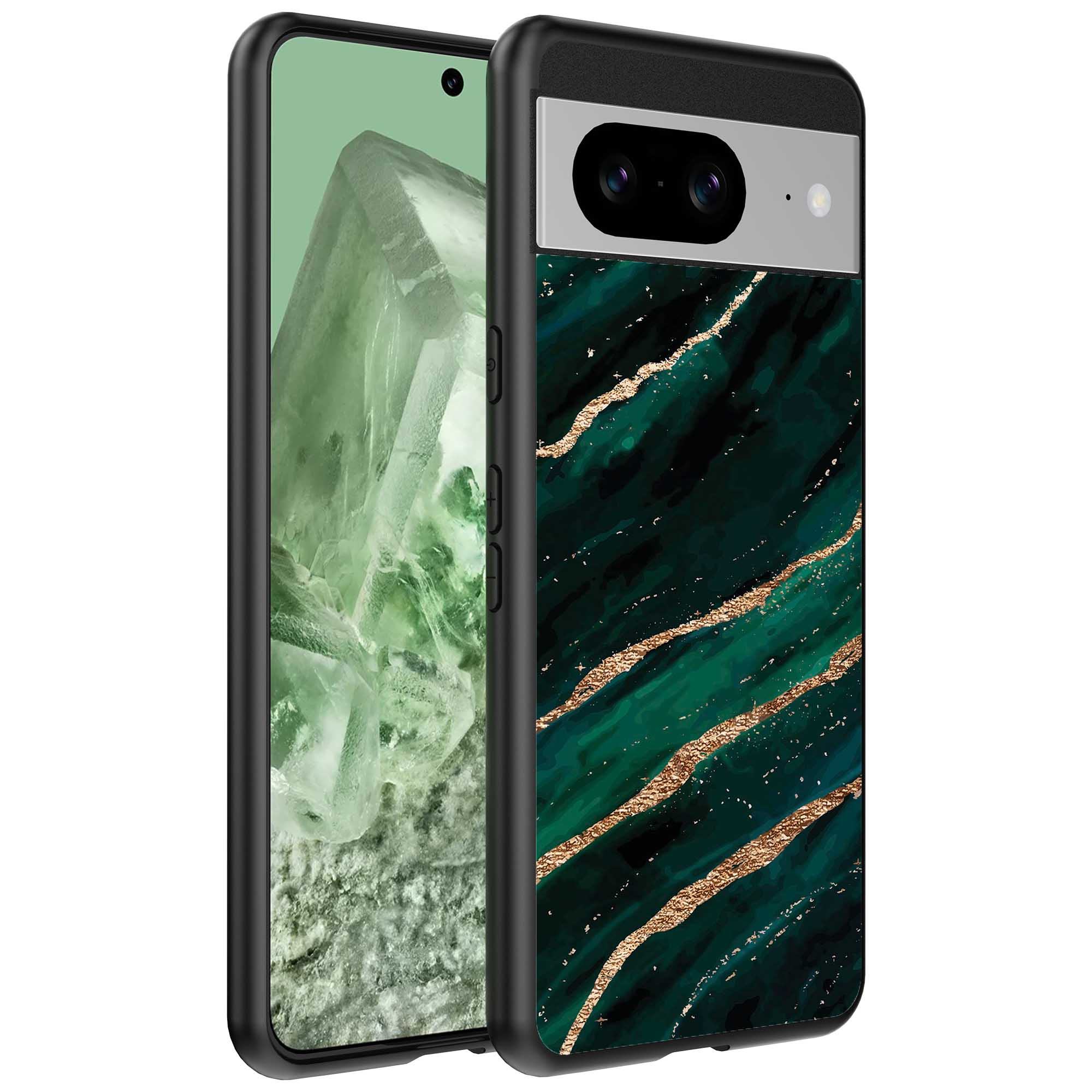 – 1x Google Pixel 8 telefoonhoesje met Groen Goud marmer design