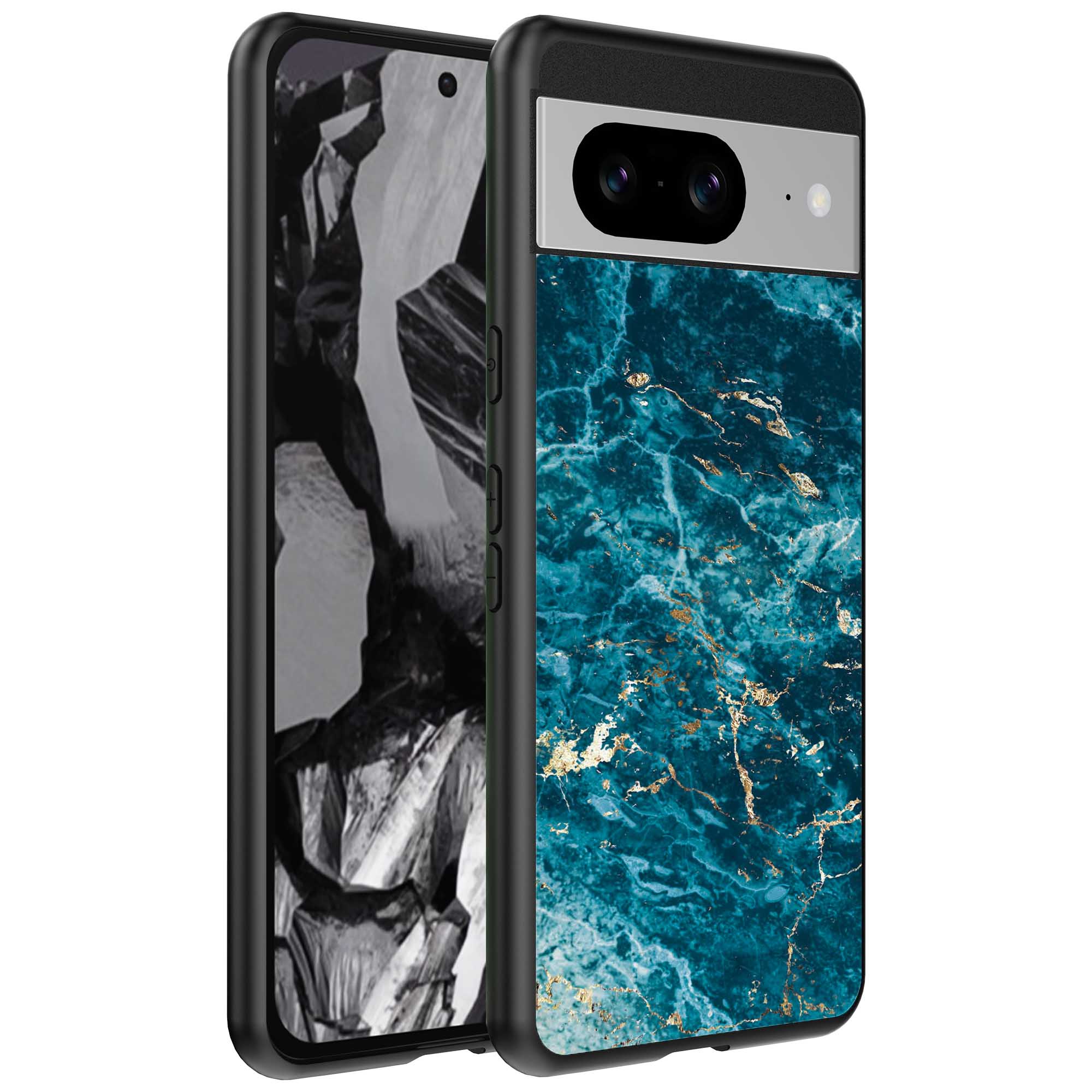 – 1x Google Pixel 8A telefoonhoesje met blauw marmer design