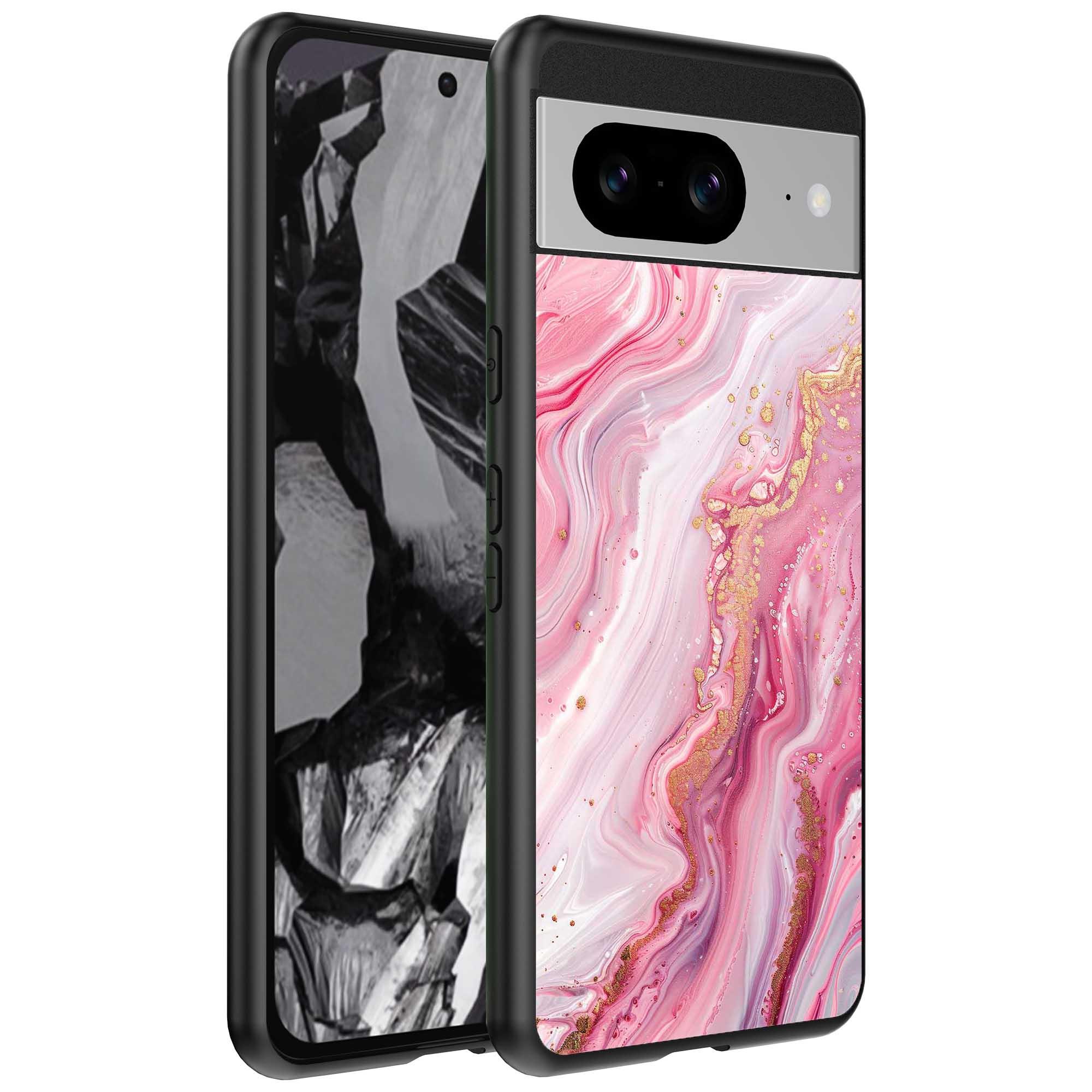 – 1x Google Pixel 8A telefoonhoesje met roze marmer design