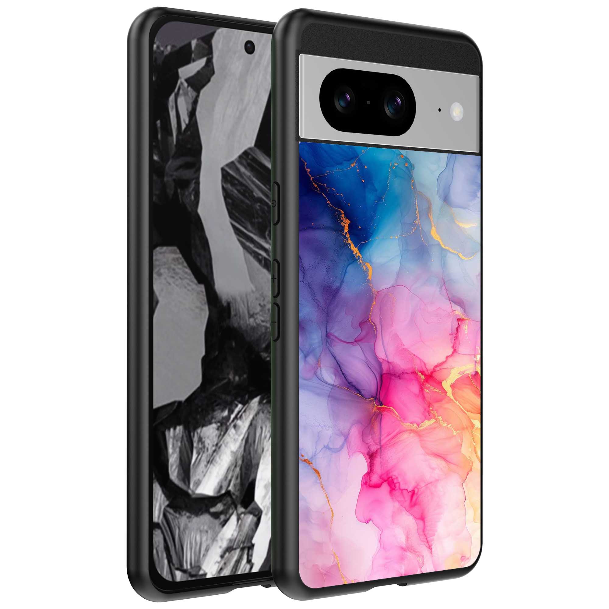 – 1x Google Pixel 8A telefoonhoesje met regenboog marmer design