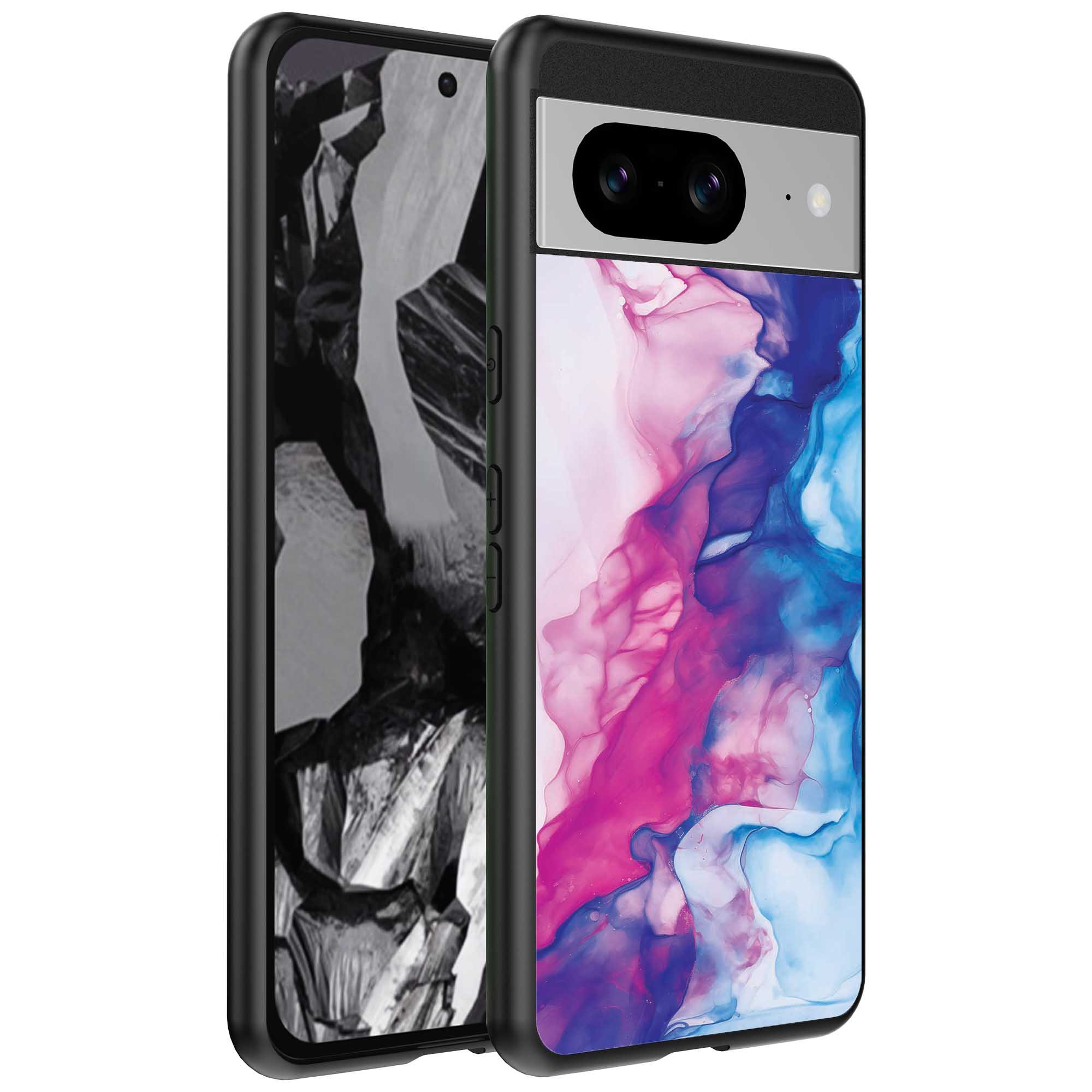 – 1x Google Pixel 8A telefoonhoesje met roze blauw marmer design