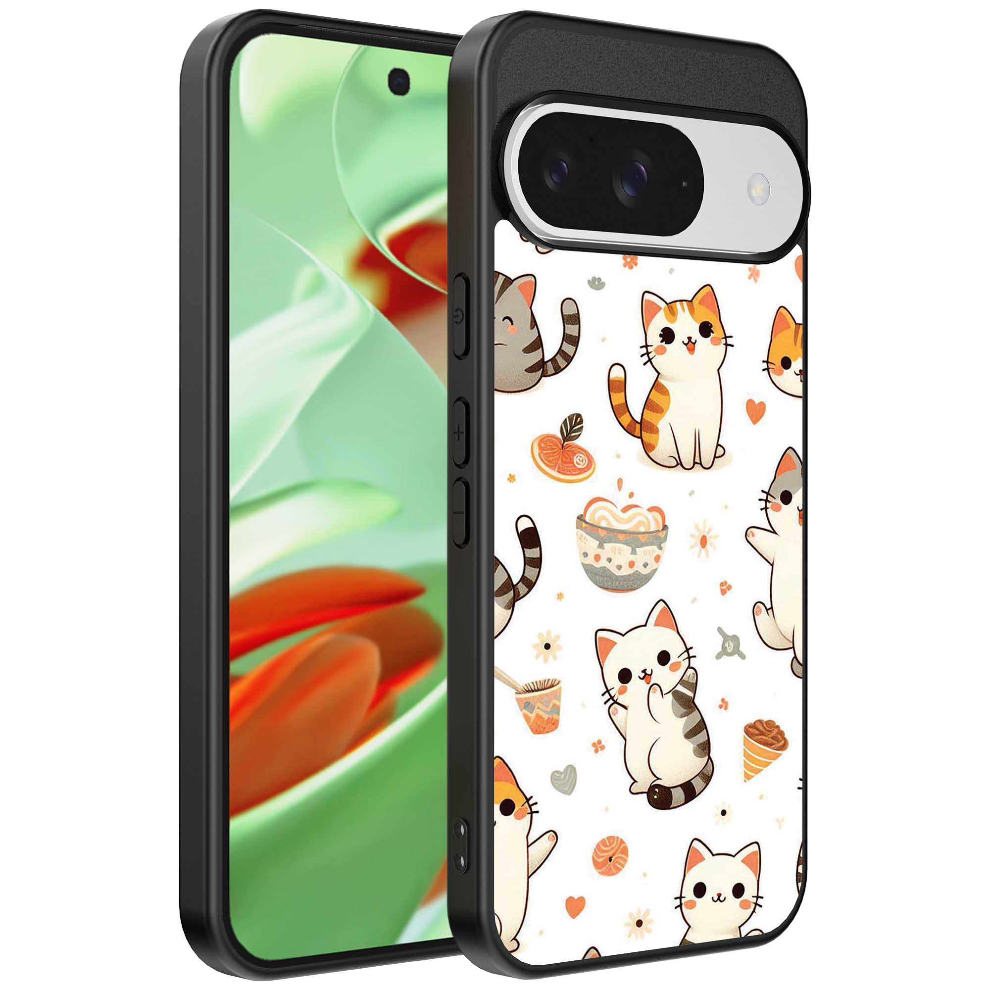 – 1x Google Pixel 9 Pro telefoonhoesje met katten opdruk