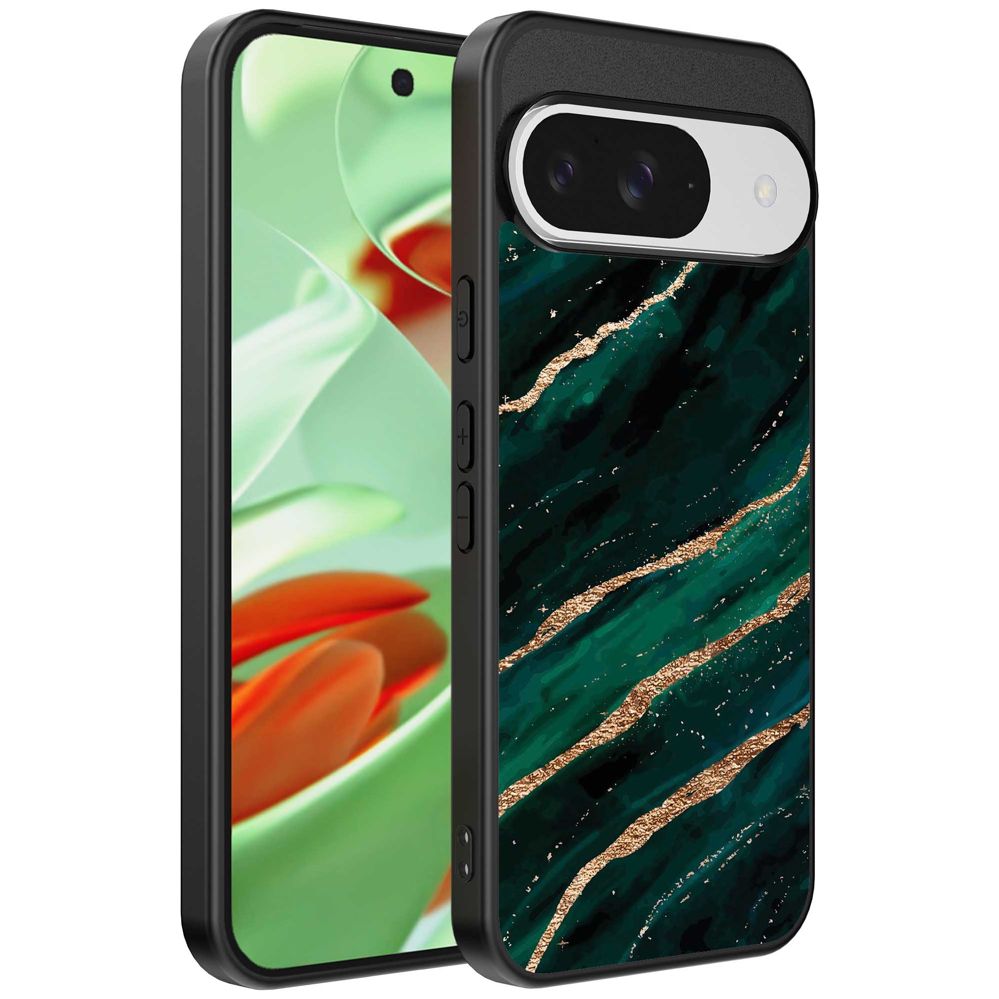 – 1x Google Pixel 9 Pro telefoonhoesje met Groen Goud marmer design
