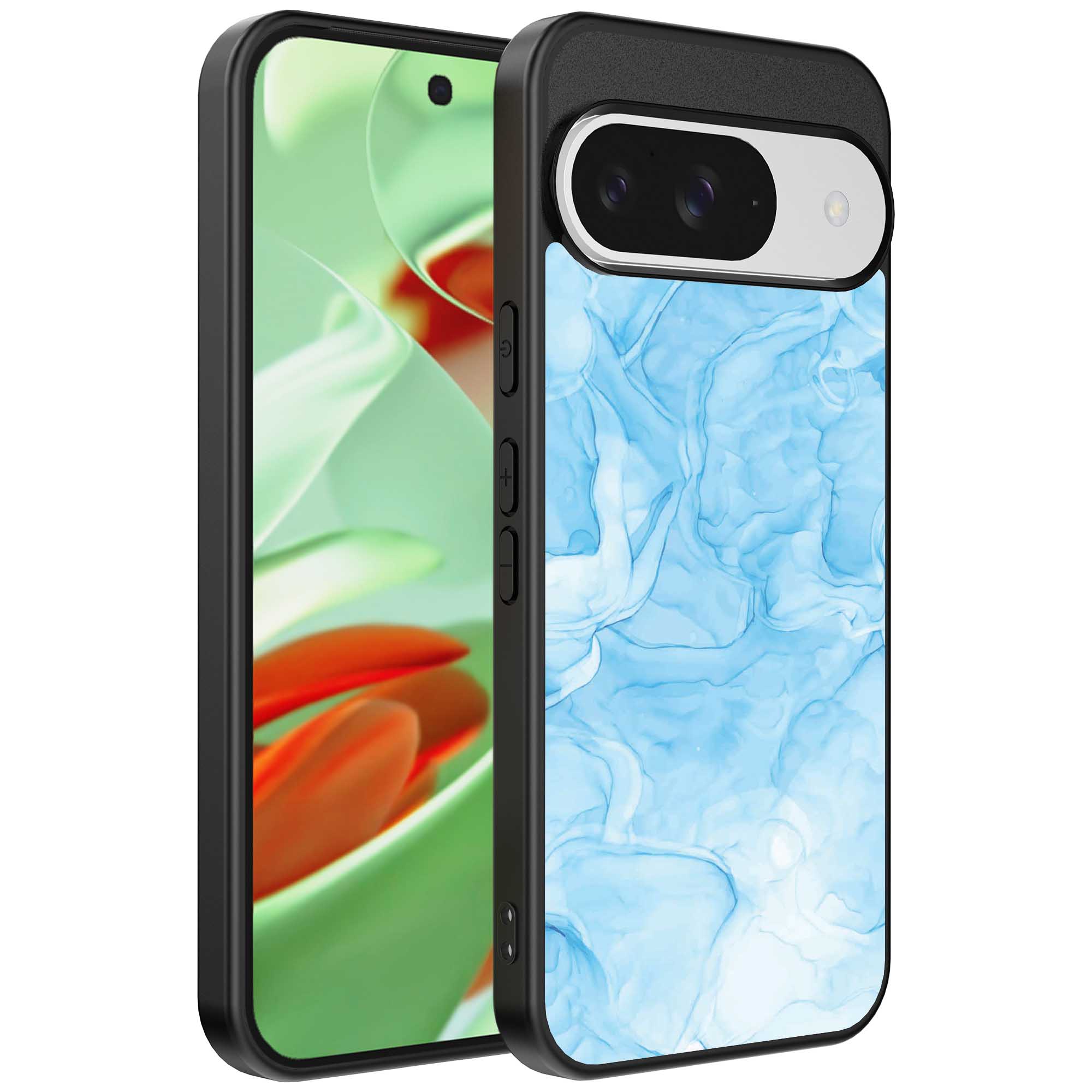 – 1x Google Pixel 9 Pro telefoonhoesje met Lichtblauw marmer design