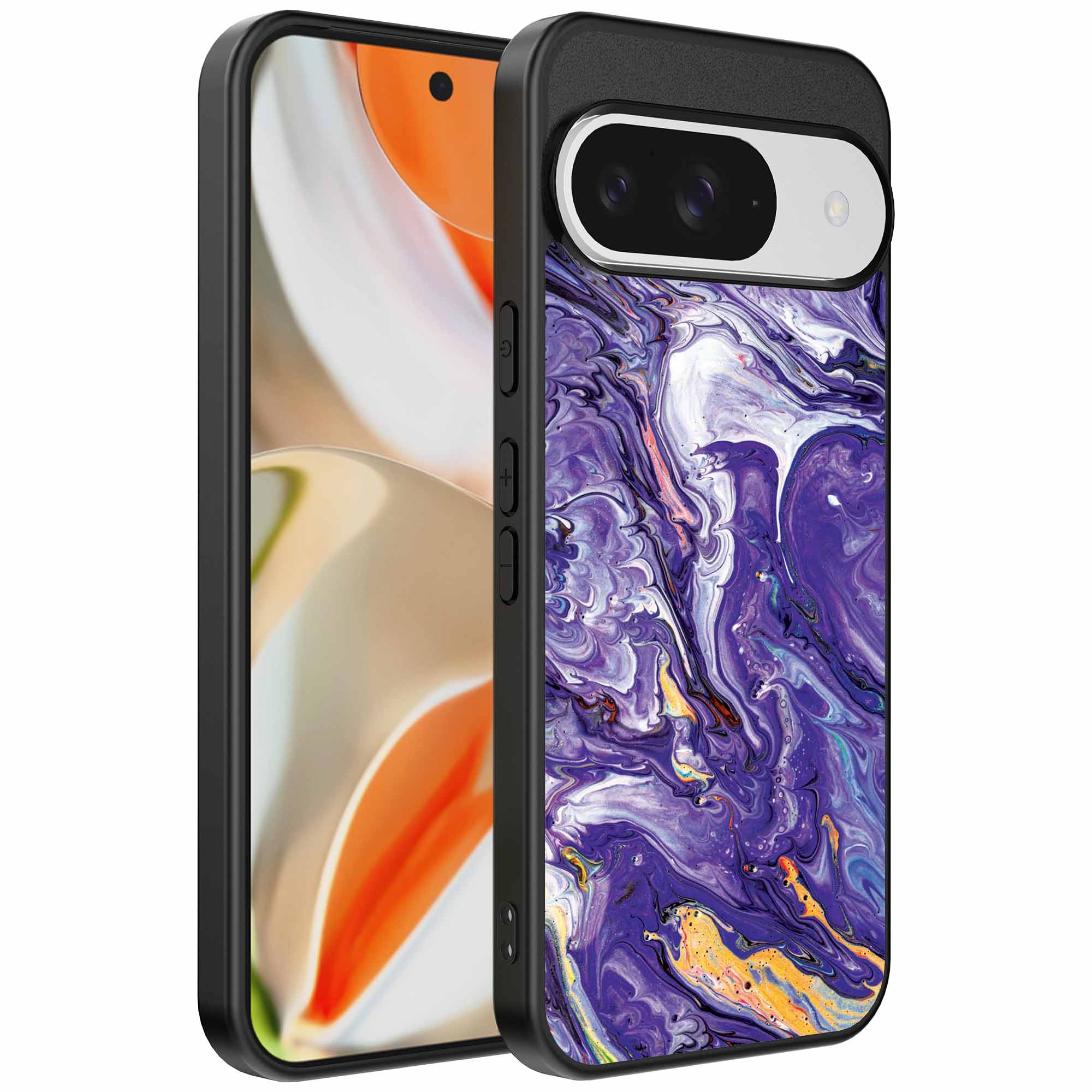 – 1x Google Pixel 9 Pro XL telefoonhoesje met goud paars marmer design