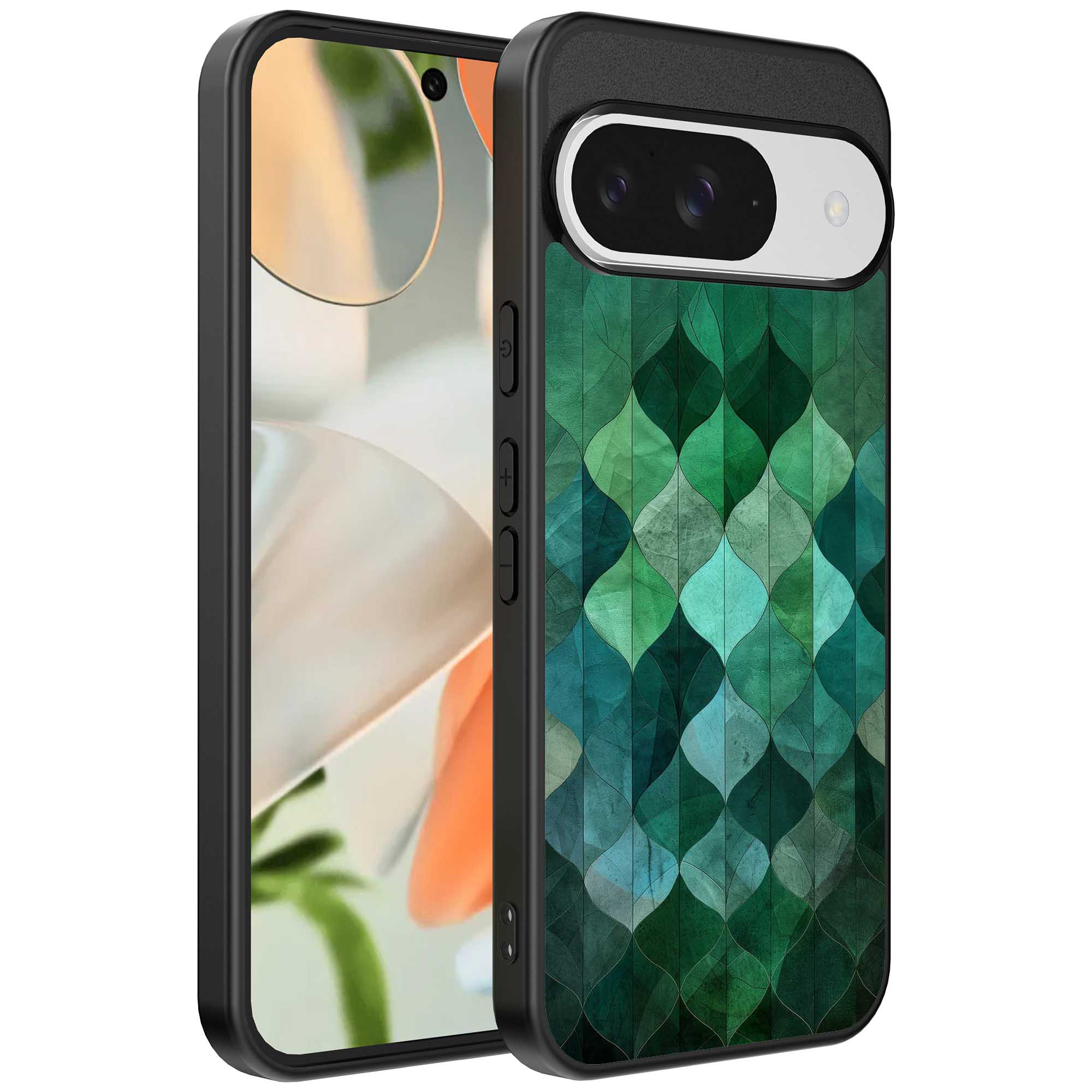 – 1x Google Pixel 9 telefoonhoesje met groene bladeren design