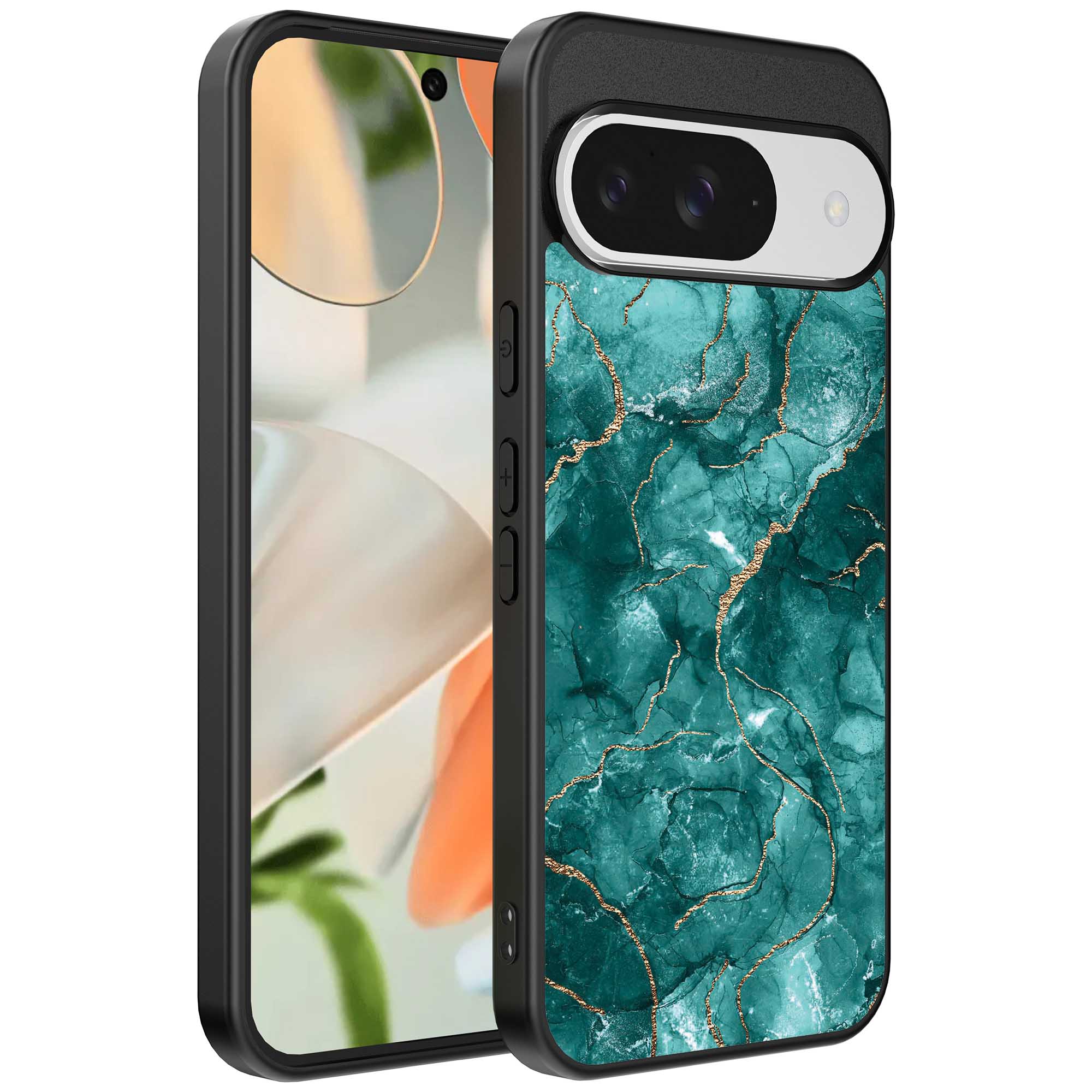 – 1x Google Pixel 9 telefoonhoesje met goud groen marmer design