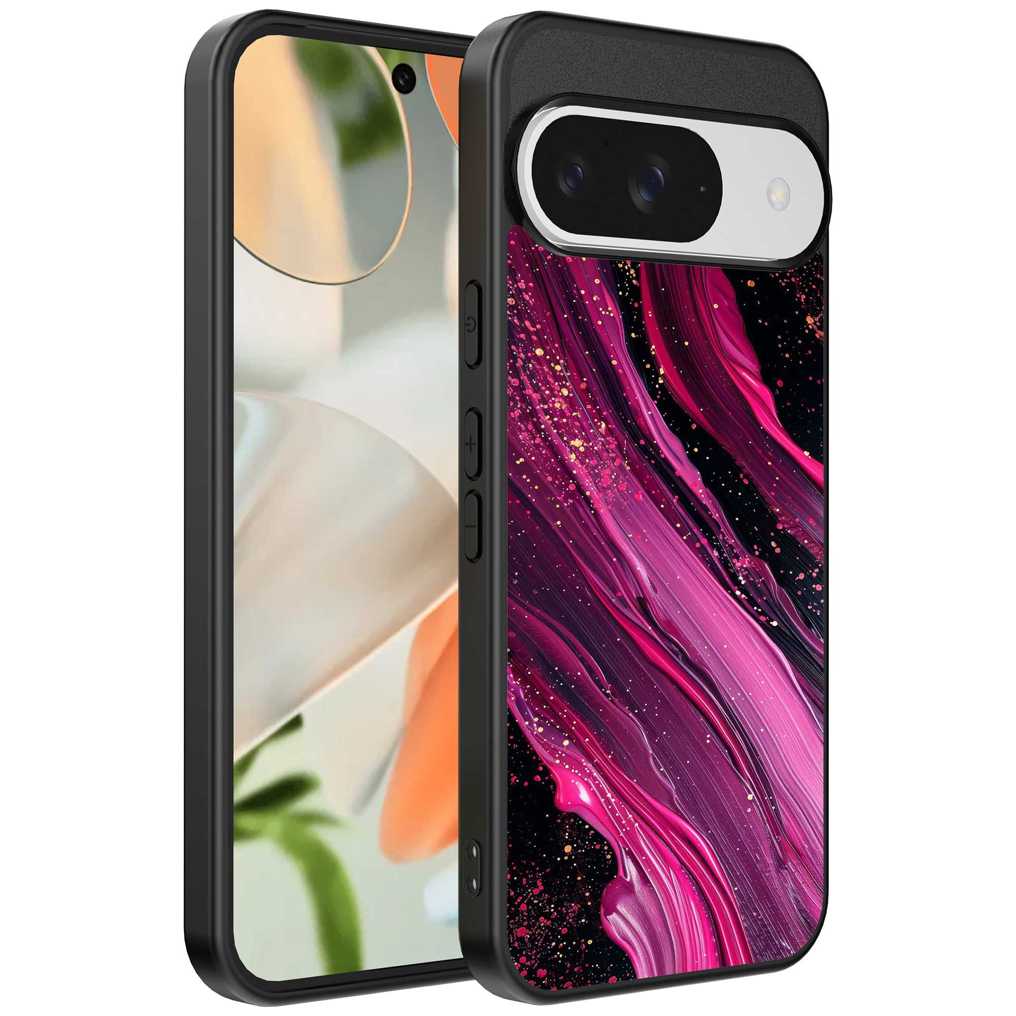 – 1x Google Pixel 9 telefoonhoesje met paars roze marmer design