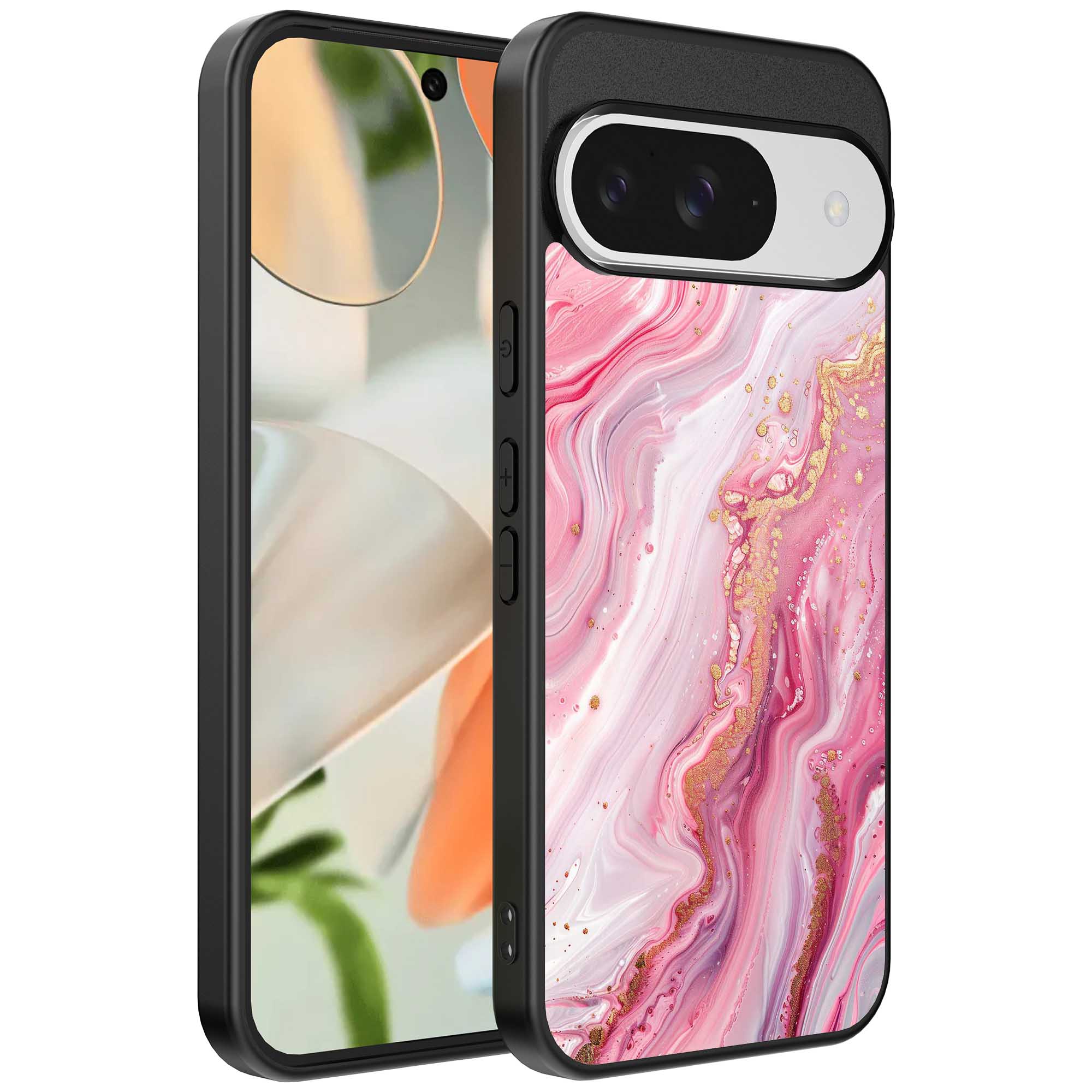 – 1x Google Pixel 9 telefoonhoesje met roze marmer design
