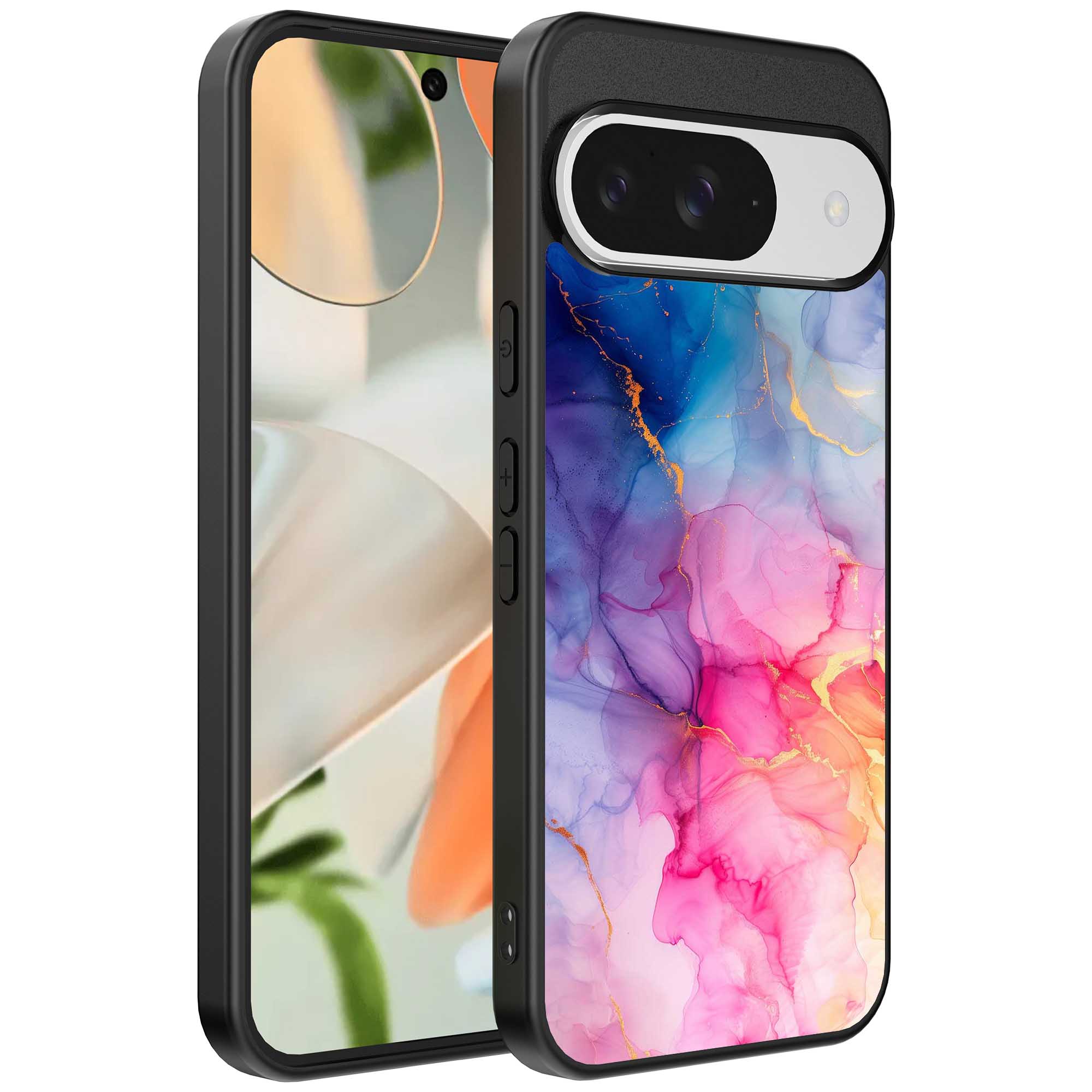 – 1x Google Pixel 9 telefoonhoesje met regenboog marmer design