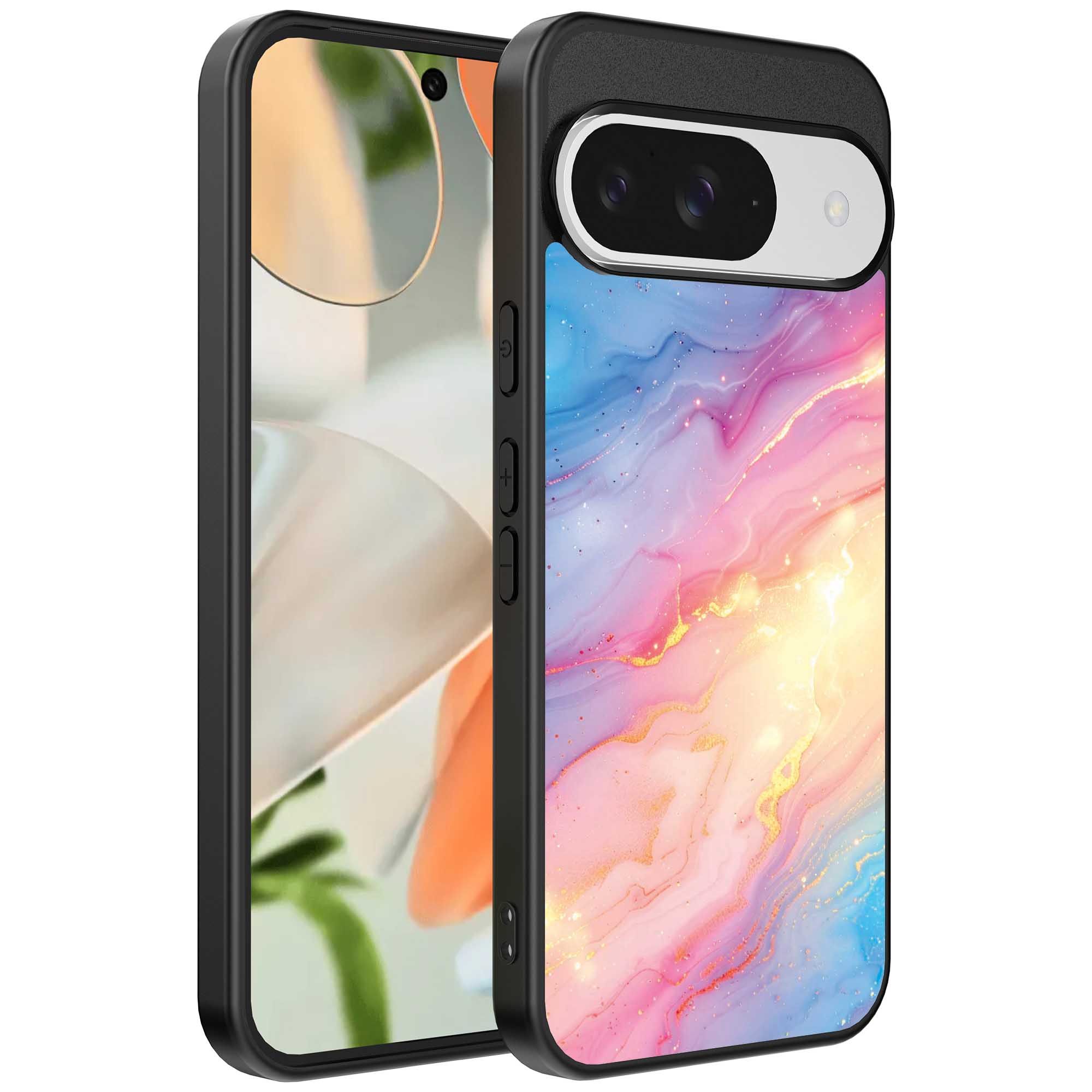 – 1x Google Pixel 9 telefoonhoesje met Regenboog Glitter Marmer design