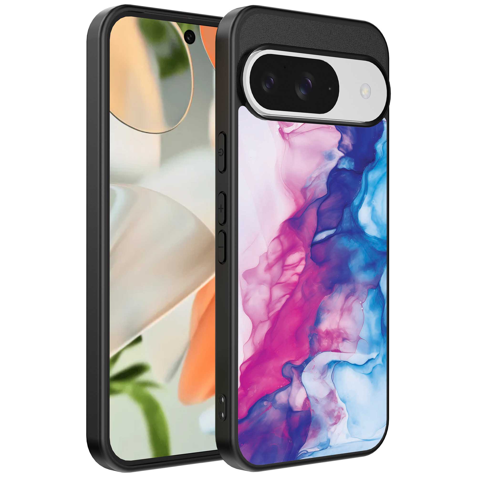 – 1x Google Pixel 9 telefoonhoesje met roze blauw marmer design
