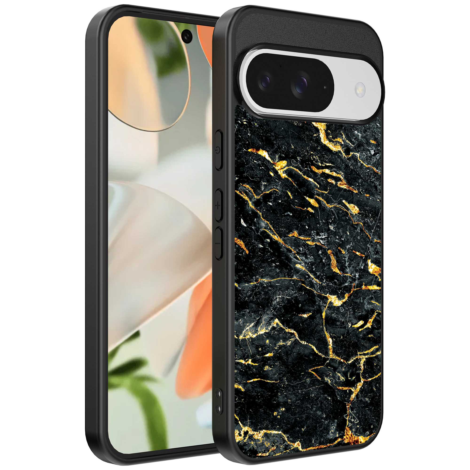 – 1x Google Pixel 9 telefoonhoesje met Goud Zwart marmer design