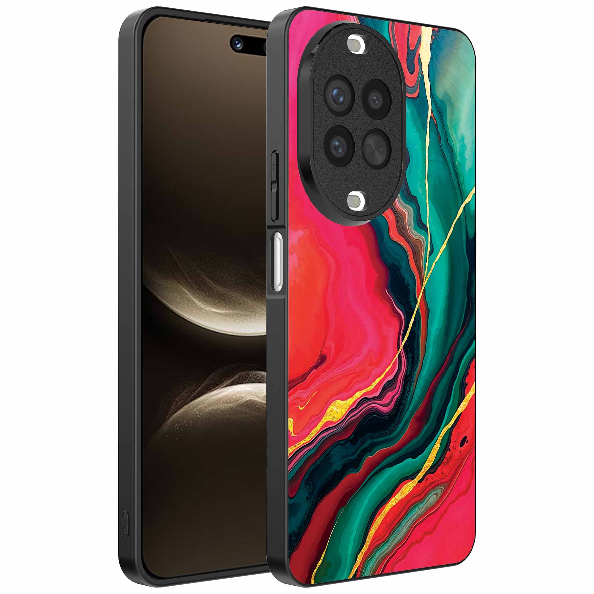 – 1x Huawei Nova 14 Ultra telefoonhoesje met rood groen marmer design