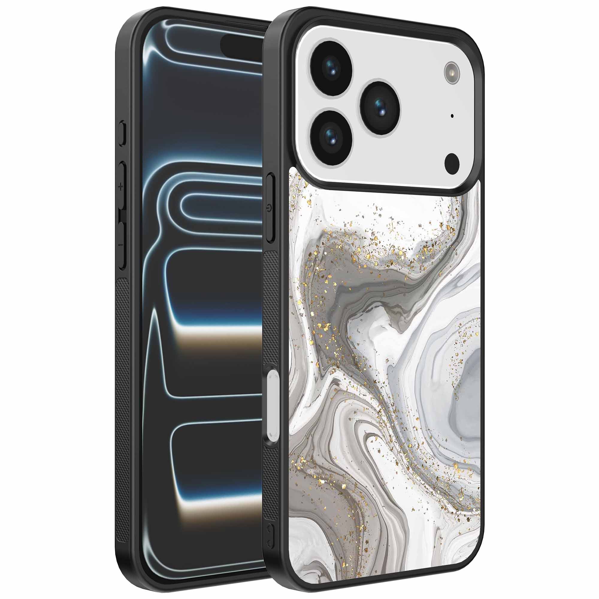 – 1x iPhone 17 Pro telefoonhoesje met zilver marmer design