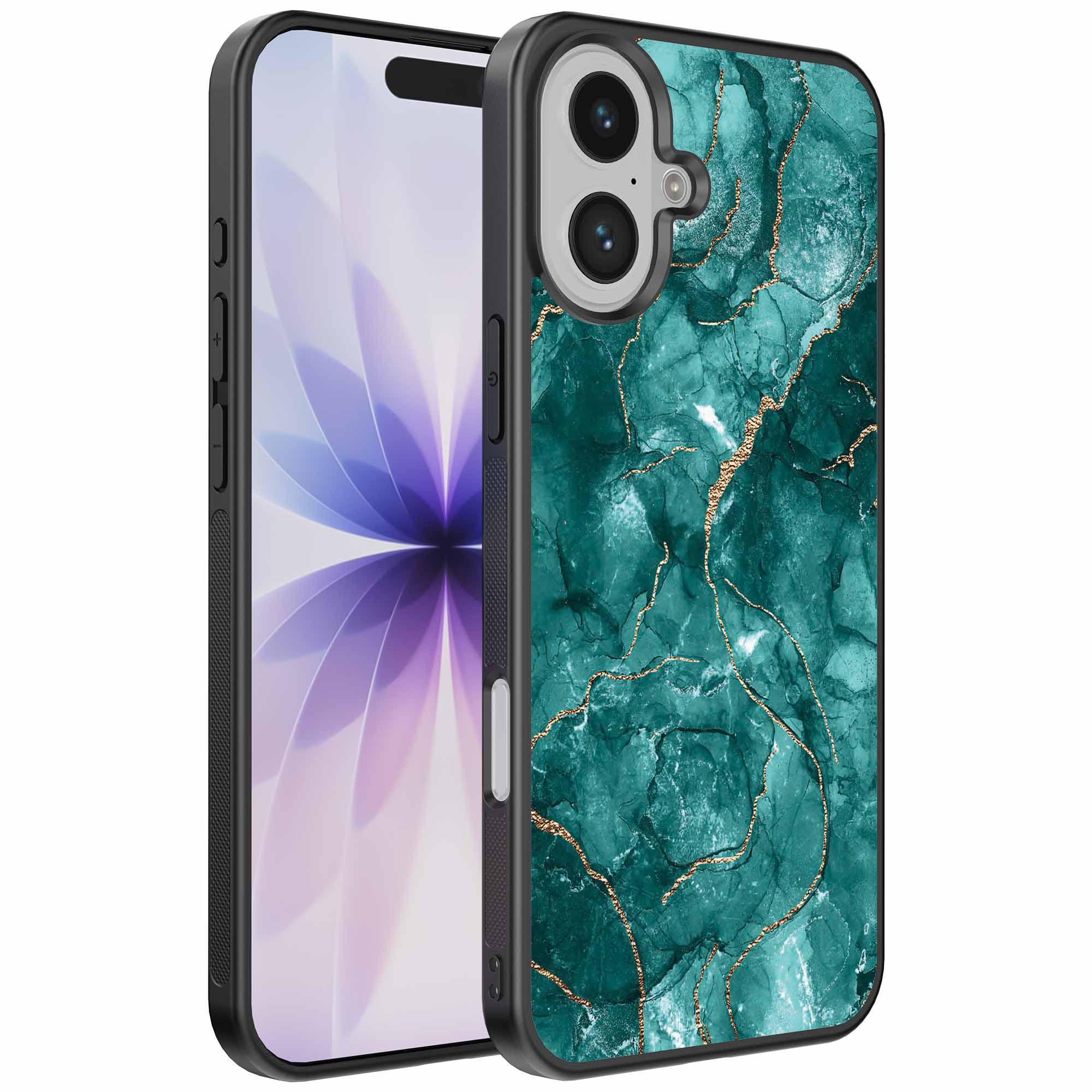 – 1x iPhone 17 telefoonhoesje met goud groen marmer design