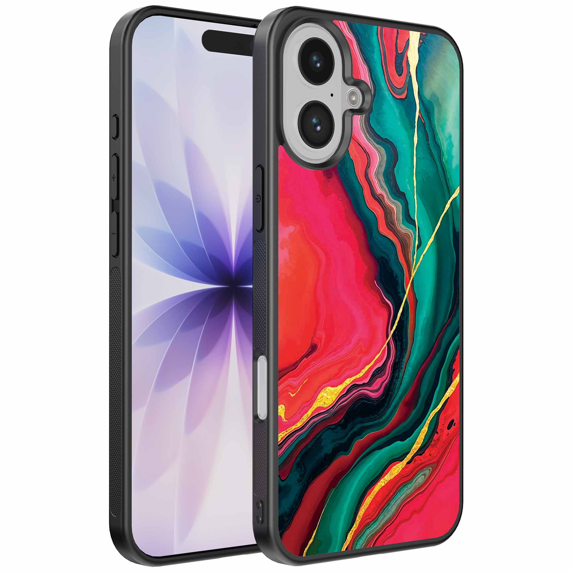 Het opvallende rood groene marmerdesign maakt dit iPhone 17 telefoonhoesje tot een echte blikvanger. De warme rode tinten en verfrissende groene accenten creëren samen een luxe en stijlvolle look die perfect aansluit bij een moderne, verfijnde smaak. Dit marmer hoesje geeft je iPhone 17 een chique en unieke uitstraling die doet denken aan natuurlijke steensoorten en klassieke marmerdetails, zonder dat je concessies hoeft te doen op het gebied van functionaliteit. Dit hoesje geeft een speelse twist aan je telefoon, ideaal voor wie houdt van een subtiele luxe uitstraling.