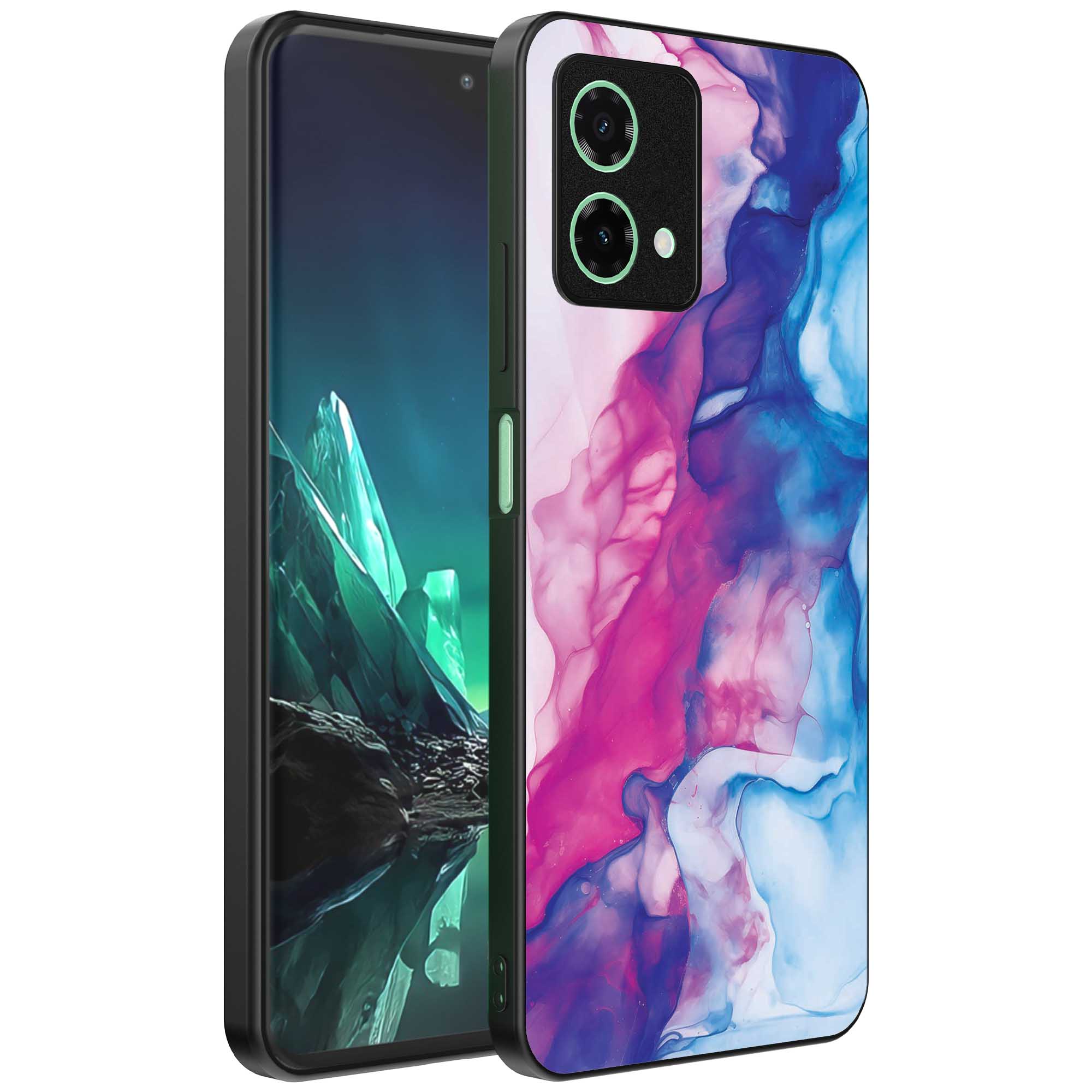 – 1x Motorola Edge 40 Neo telefoonhoesje met roze blauw marmer design