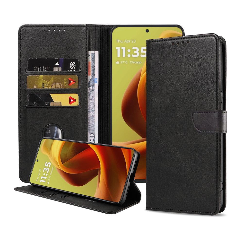– 1x Kunstleren hoesje met magnetisch lipje Motorola Edge 50 Fusion / Moto G85 zwart