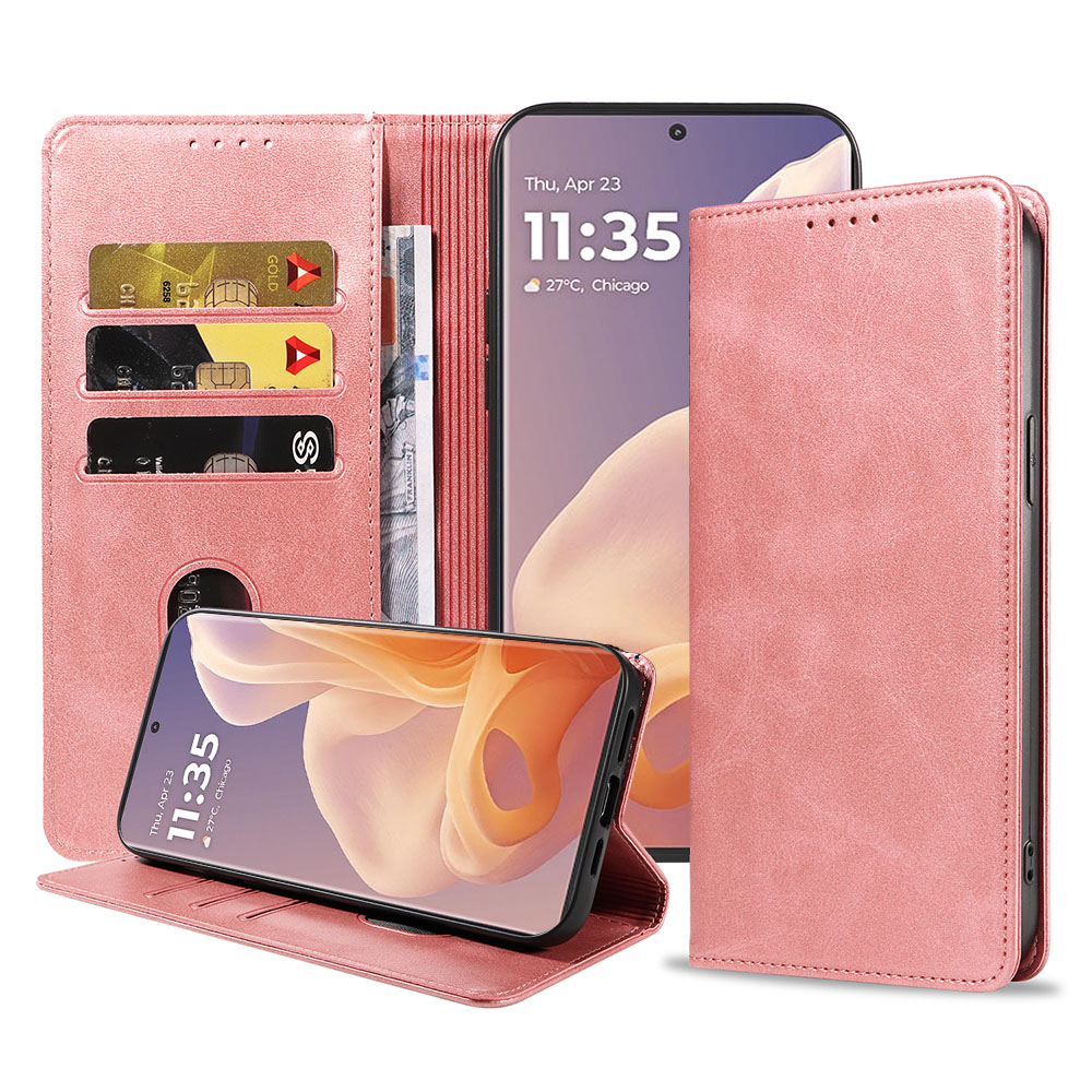 – 1x Leren hoes met magnetische sluiting Motorola Edge 50 Fusion / Moto G85 rosé goud