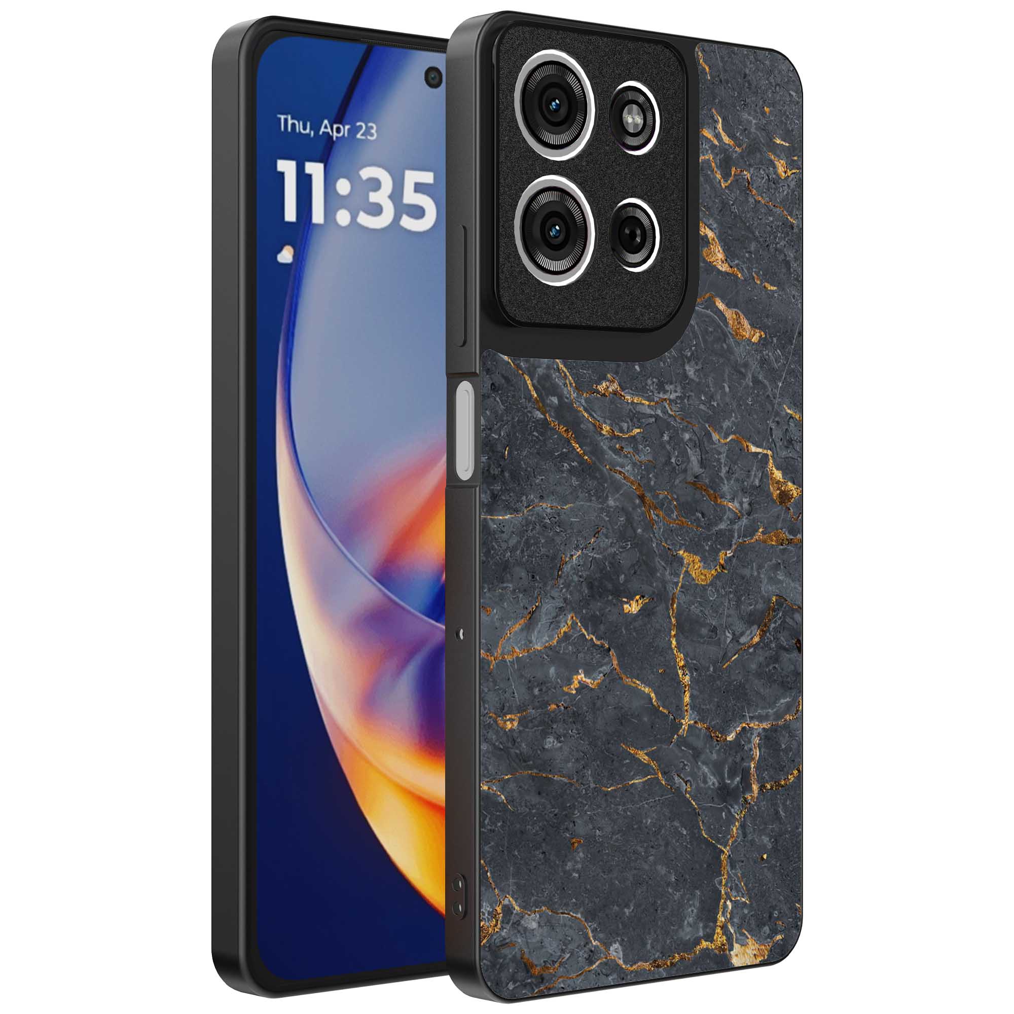 – 1x Motorola Edge 50 Neo telefoonhoesje met goud grijs marmer design
