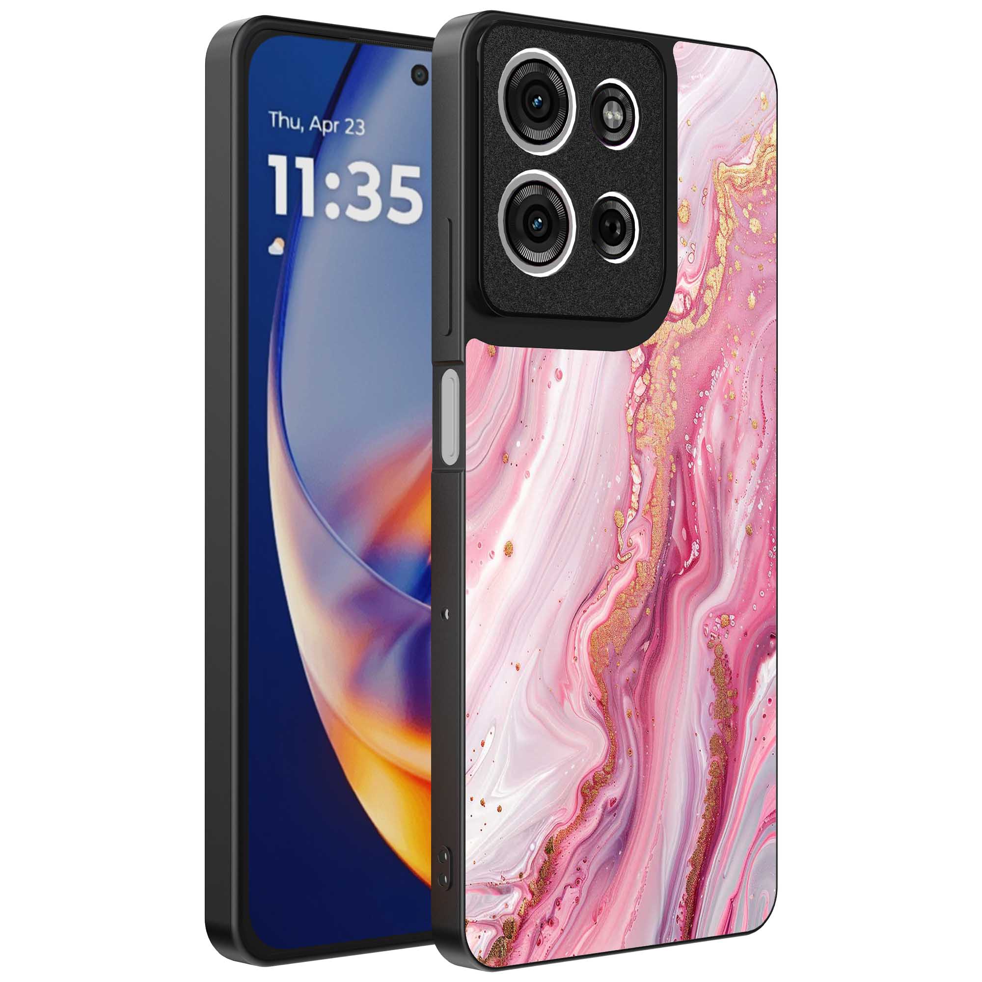 – 1x Motorola Edge 50 Neo telefoonhoesje met roze marmer design