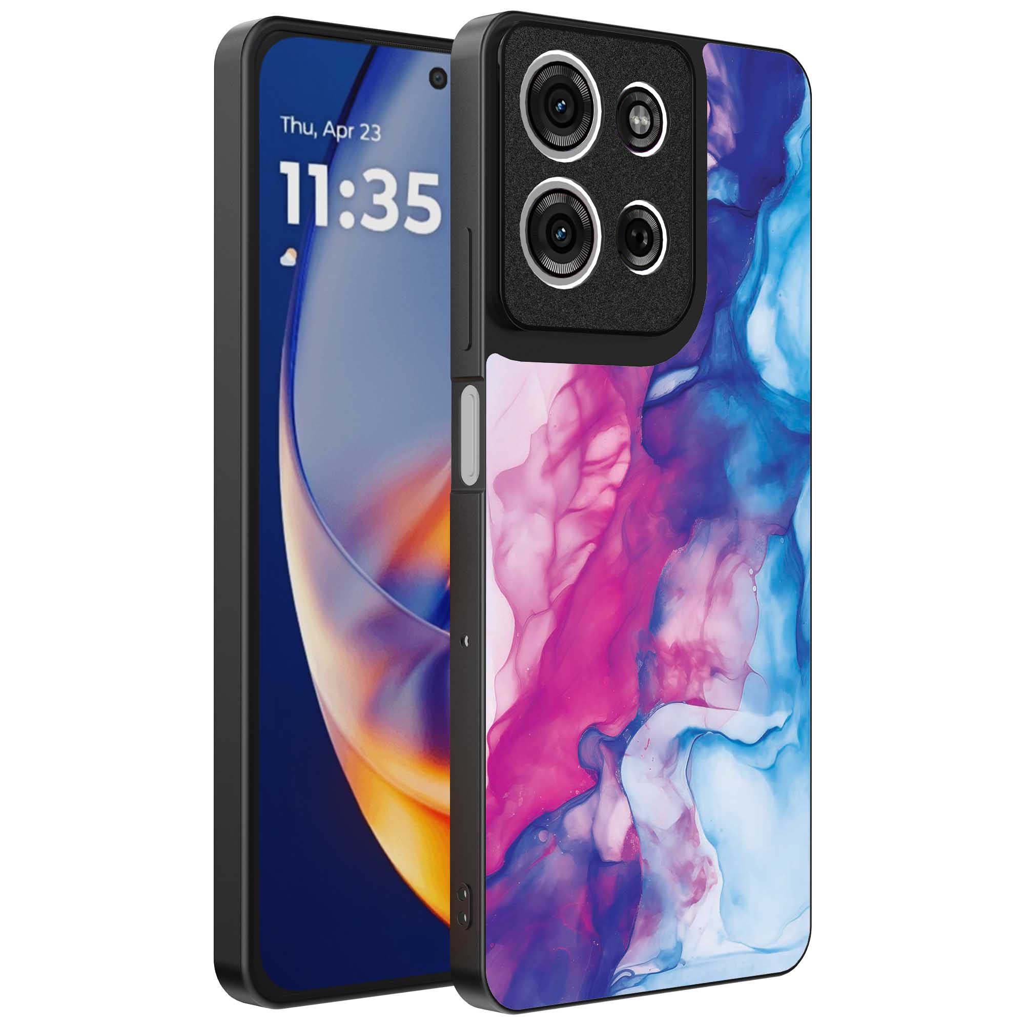 – 1x Motorola Edge 50 Neo telefoonhoesje met roze blauw marmer design