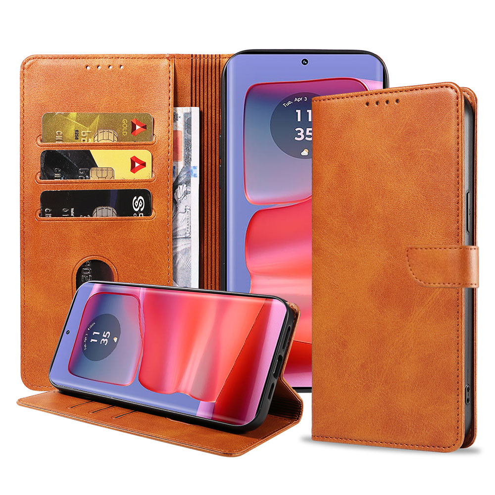 – 1x Kunstleren hoesje met magnetisch lipje Motorola Edge 50 Pro bruin