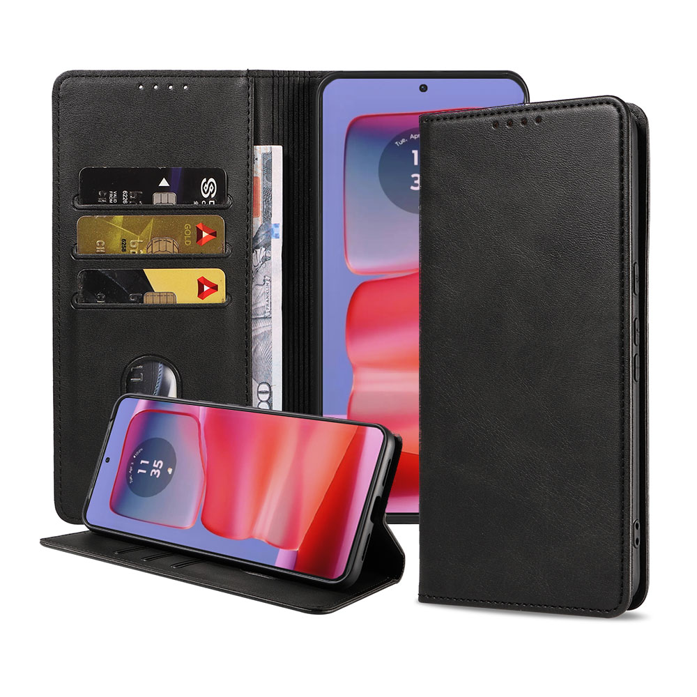 – 1x Leren hoes met magnetische sluiting Motorola Edge 50 Pro zwart