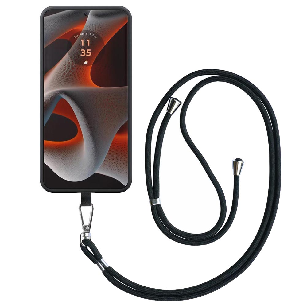 -1x Geschikt voor Motorola Moto G Powery 2024 telefoonhoesje met zwart afneembaar koord