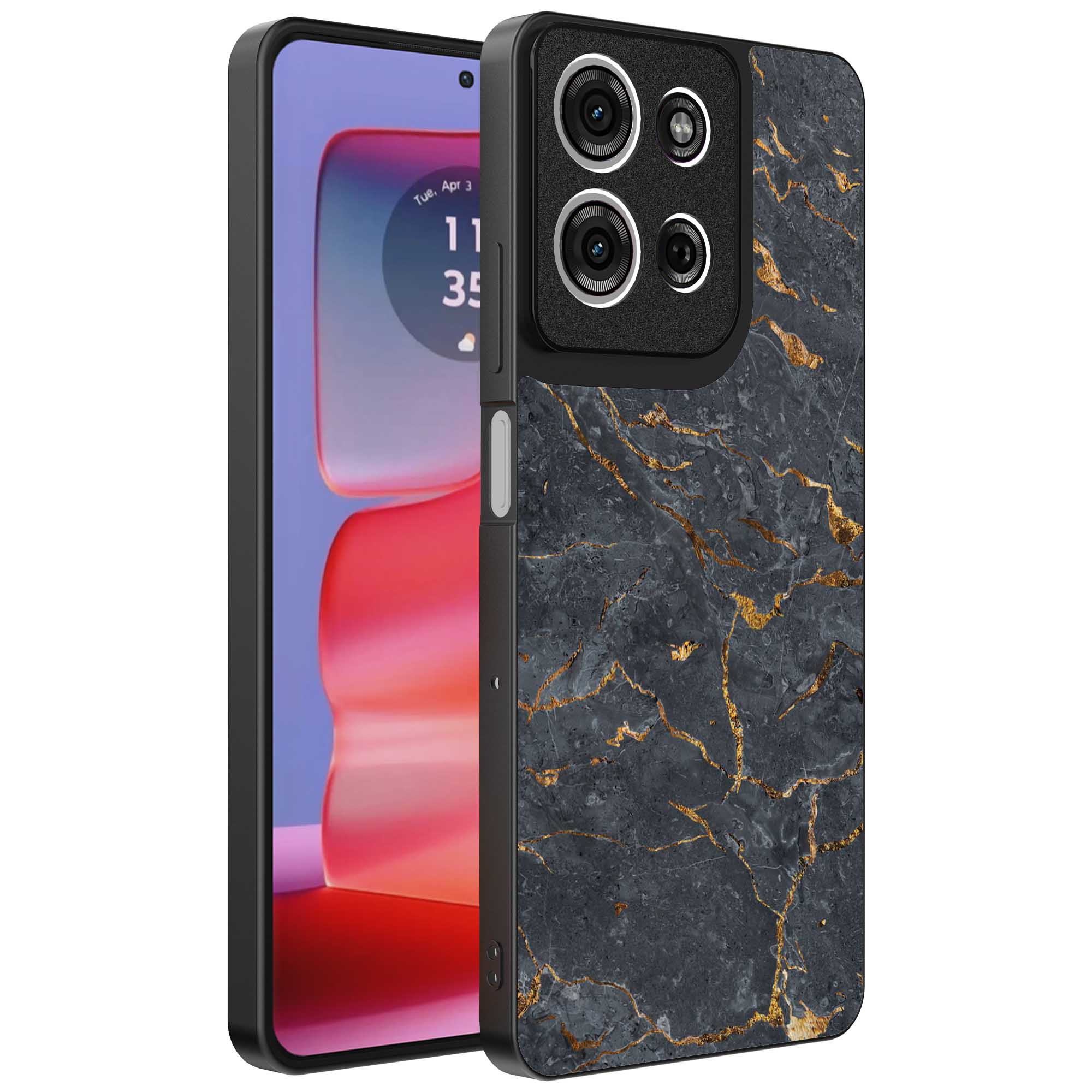 – 1x Motorola Edge 50 Pro telefoonhoesje met goud grijs marmer design