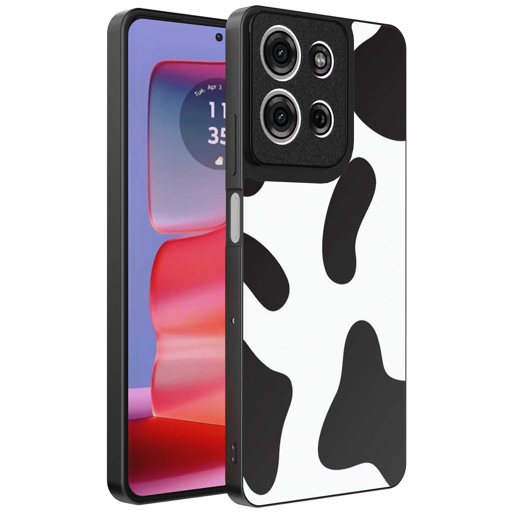 – 1x Motorola Edge 50 Pro telefoonhoesje met zwart witte koeienvlekken design
