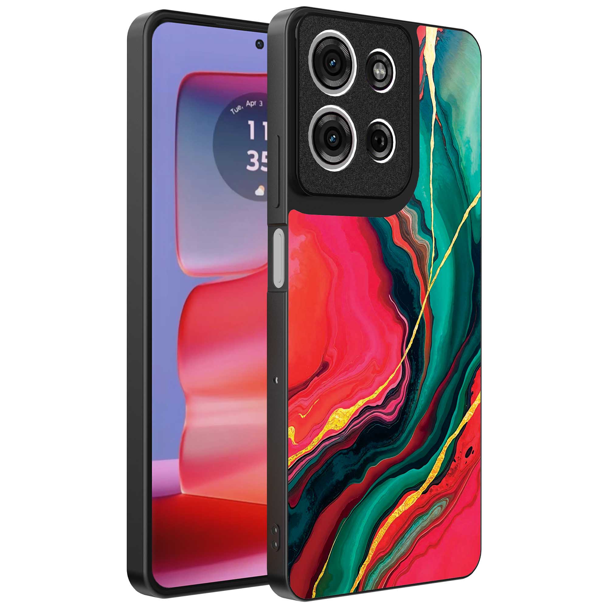 – 1x Motorola Edge 50 Pro telefoonhoesje met rood groen marmer design