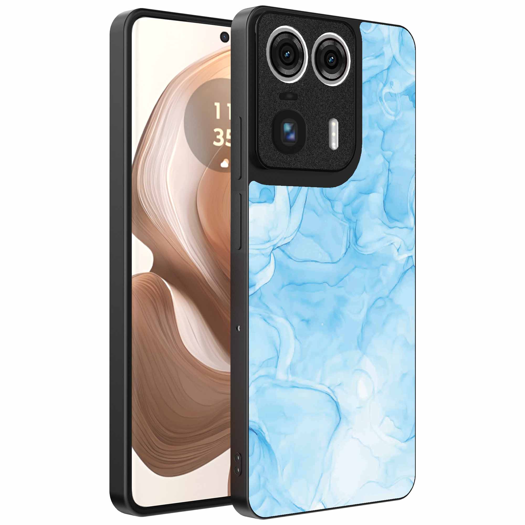 – 1x Motorola Edge 50 Ultra telefoonhoesje met Lichtblauw marmer design