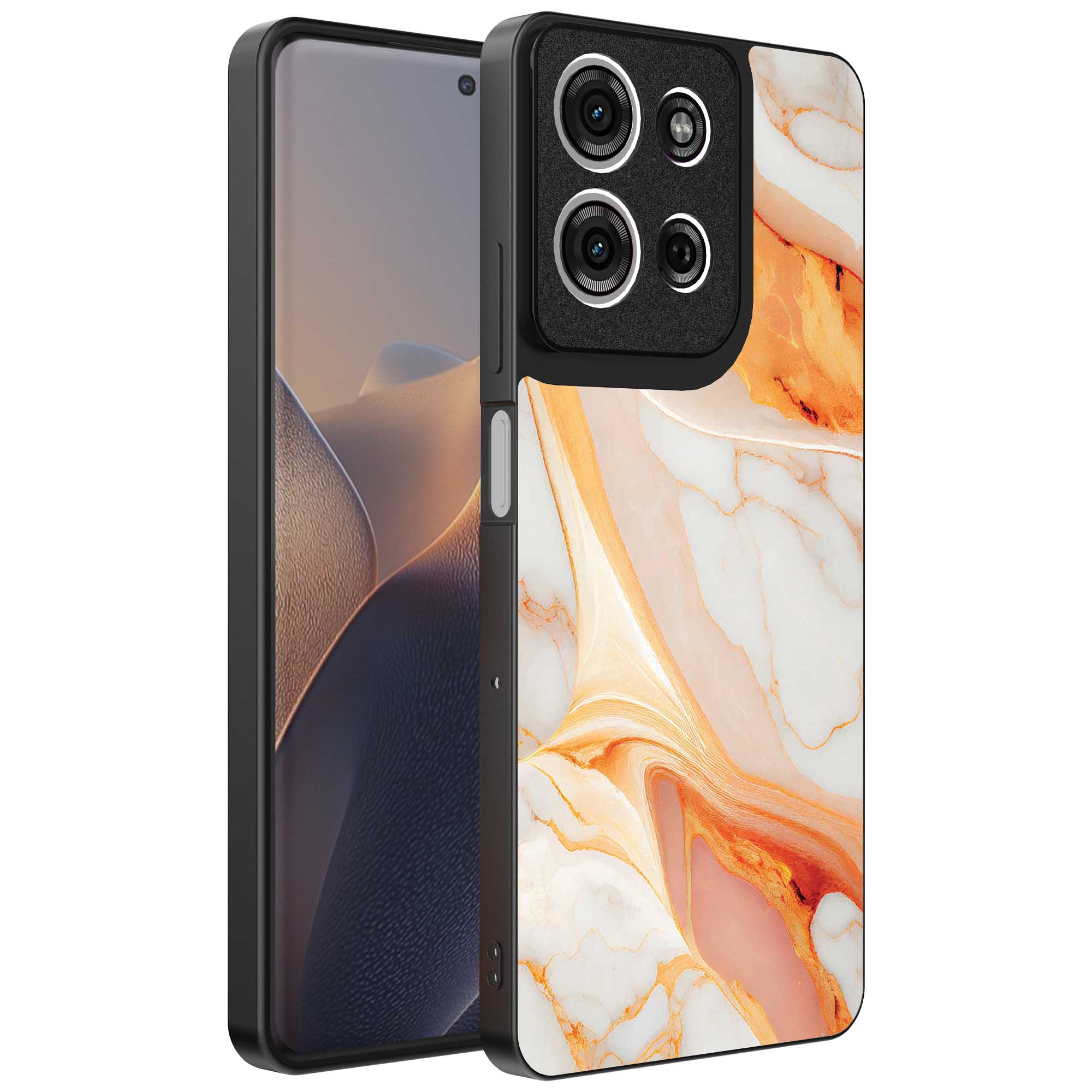 – 1x Motorola Edge 60 Fusion telefoonhoesje met oranje marmer design