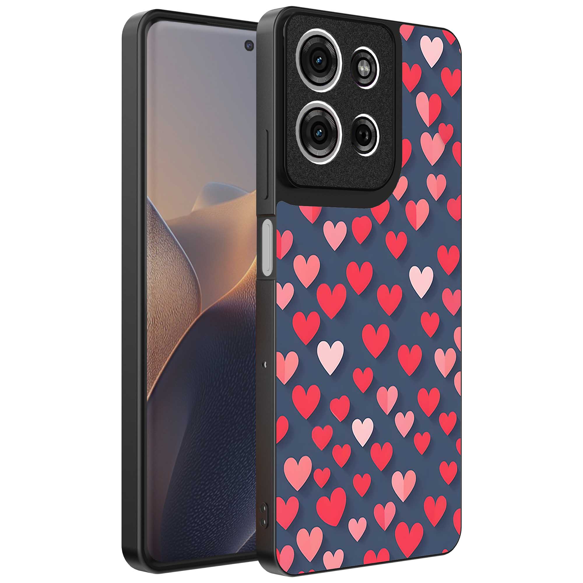 – 1x Motorola Edge 60 Fusion telefoonhoesje met hartjes design