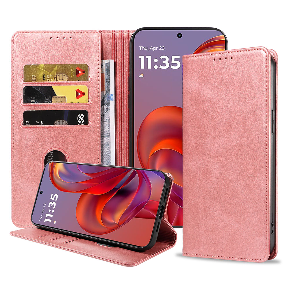 – 1x Leren hoes met magnetische sluiting Motorola Edge 60 Neo rosé goud