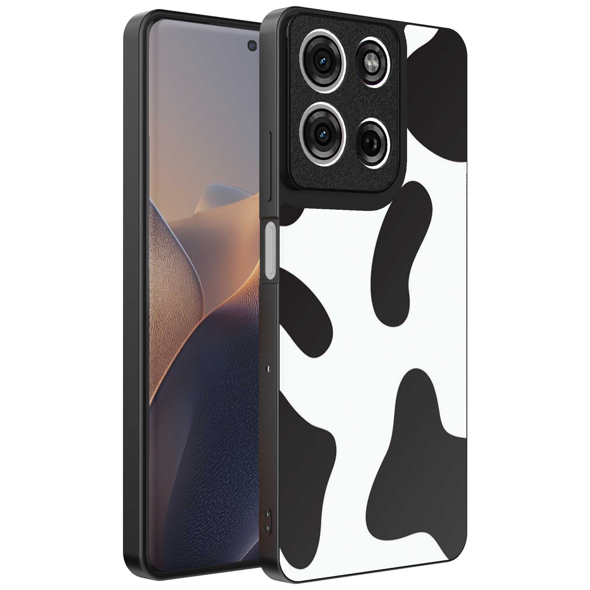 – 1x Motorola Edge 60 Pro telefoonhoesje met zwart witte koeienvlekken design