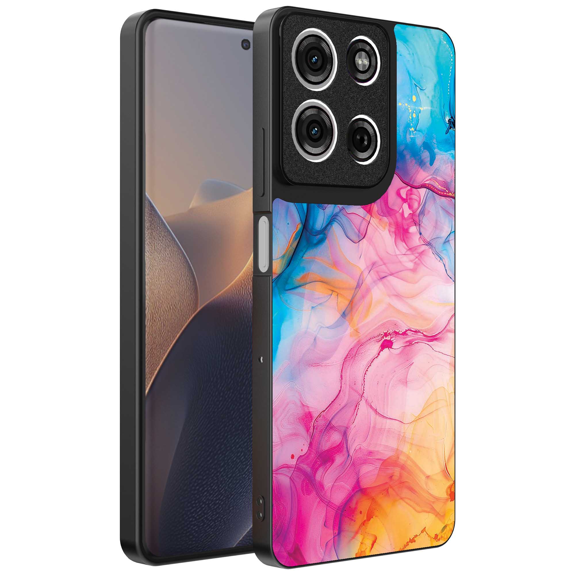 1x Telefoonhoesje voor Motorola Edge 60 Pro met regenboog acryl marmer opdruk