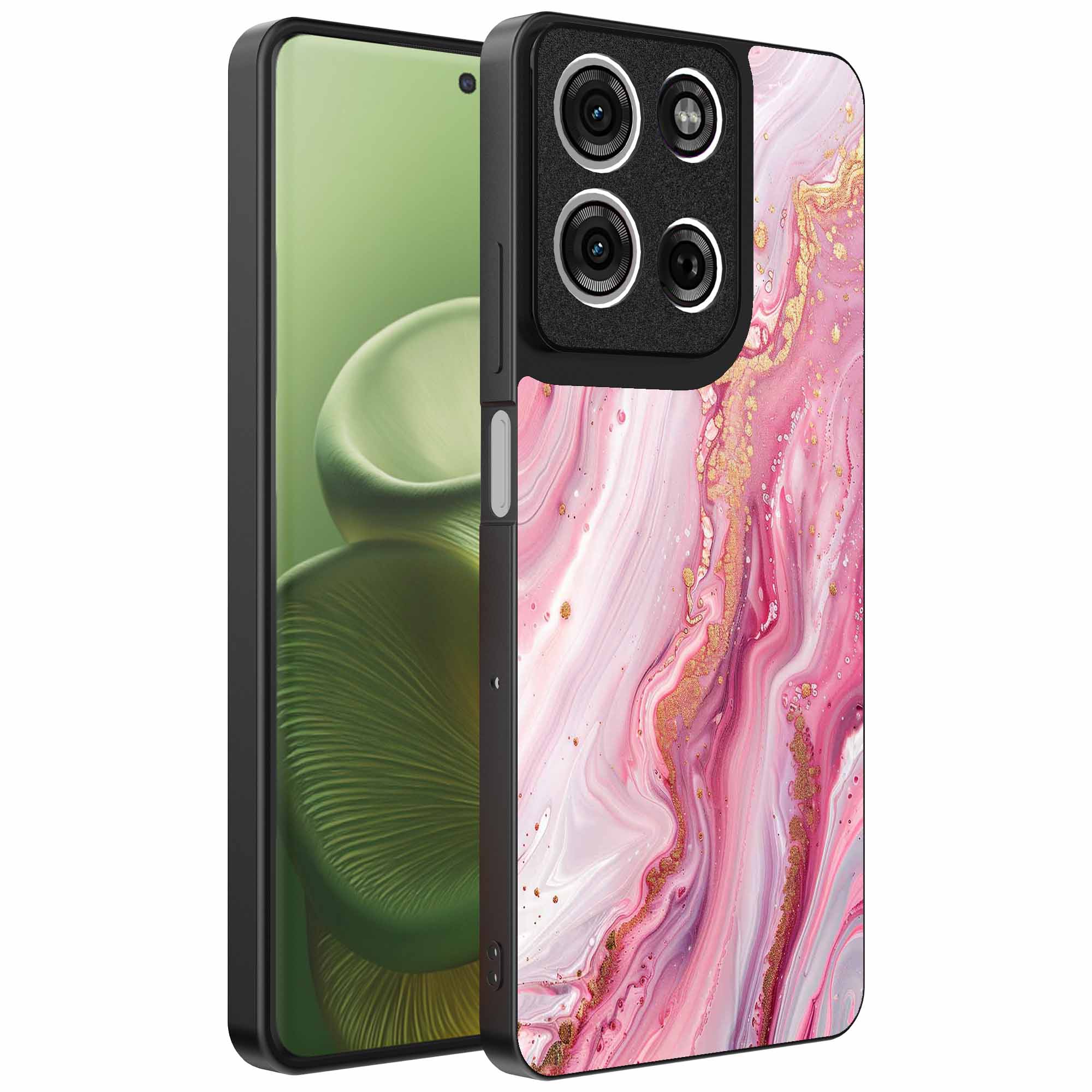 – 1x Motorola Edge 60 telefoonhoesje met roze marmer design