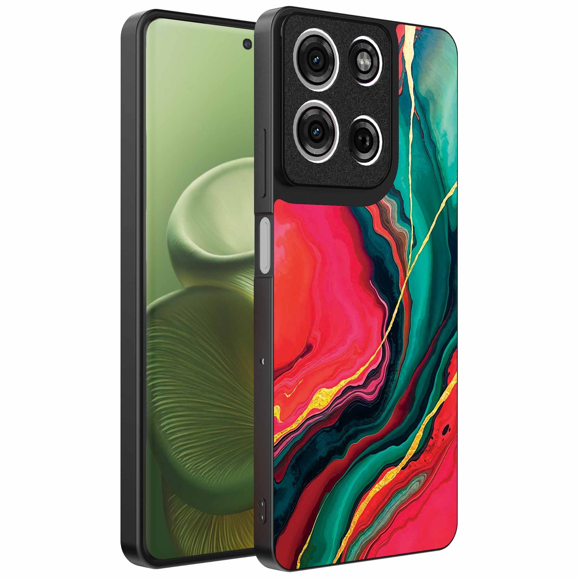 – 1x Motorola Edge 60 telefoonhoesje met rood groen marmer design