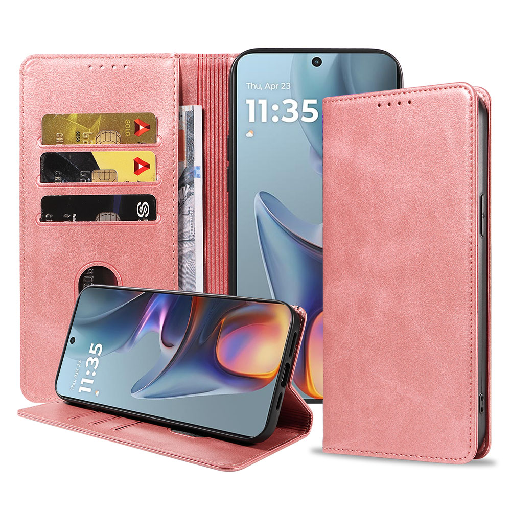 – 1x Leren hoes met magnetische sluiting Motorola Moto E15 / G05 rosé goud